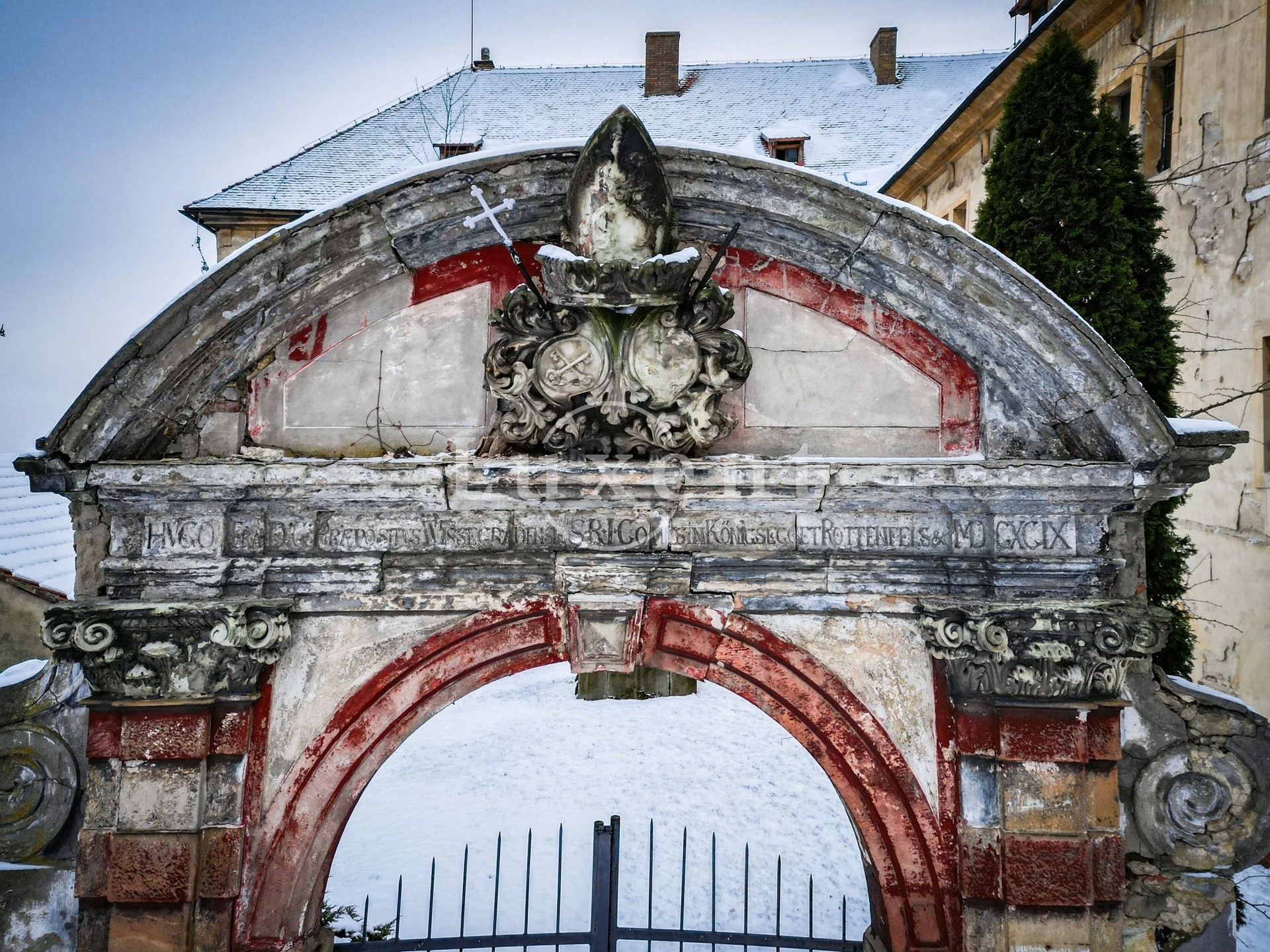 Angeboten wird der frühbarocke Schlosskomplex Žitenice in Nordböhmen, einschließlich des Wirtschaftshofs und des Gartens.