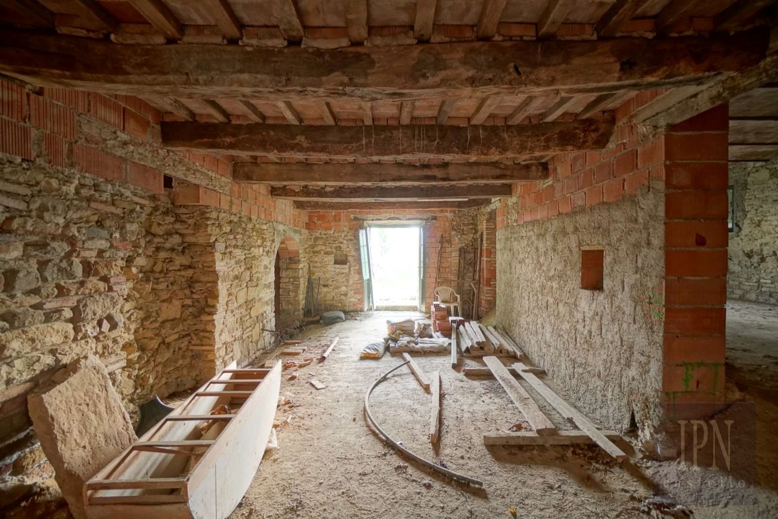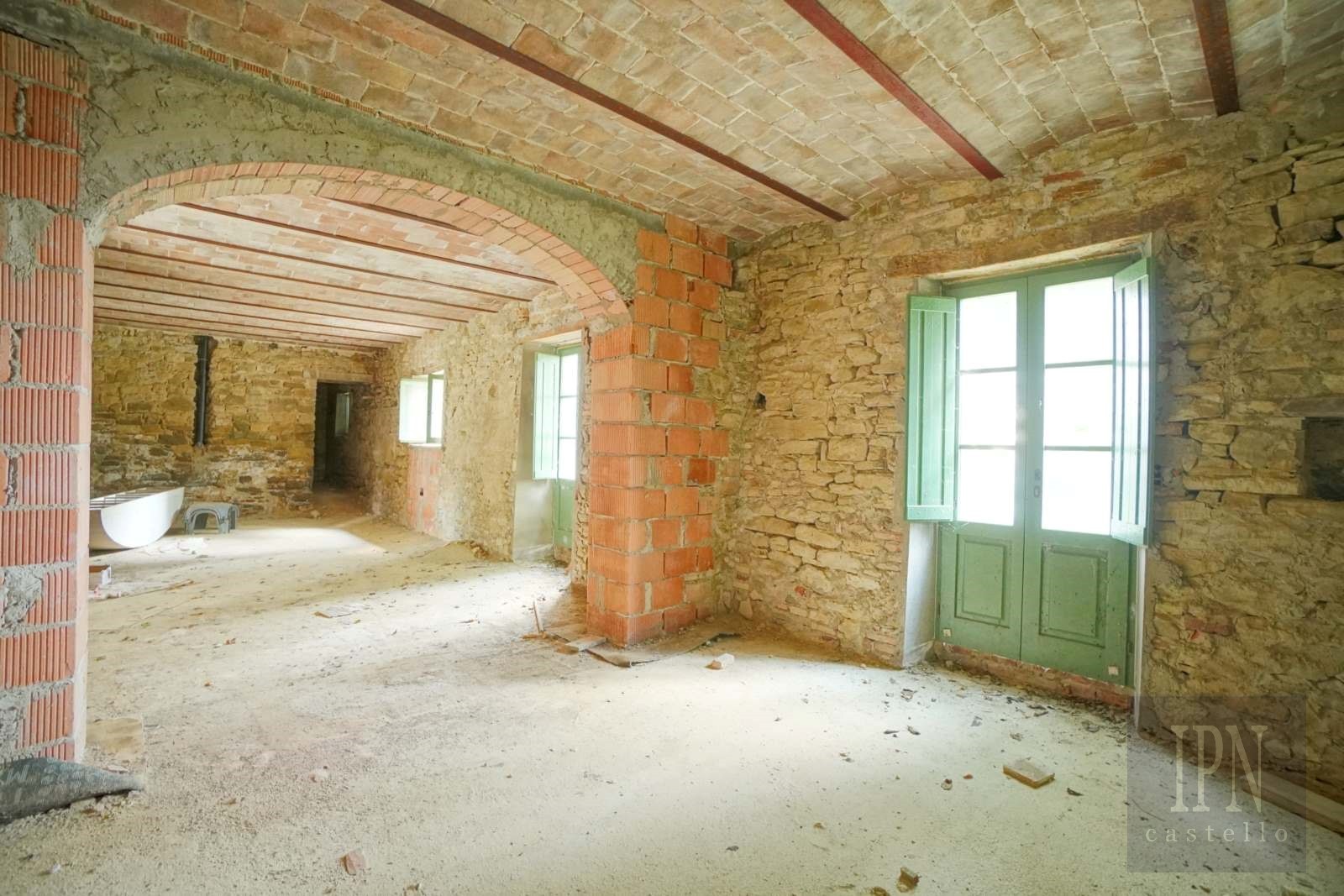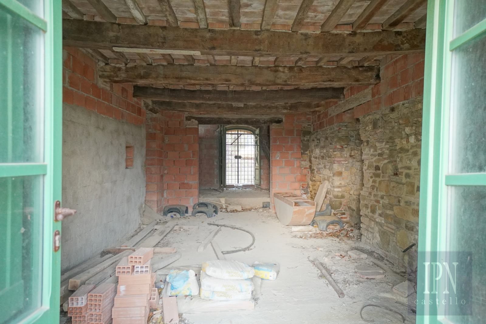 This 270 sqm stone farmhouse is located 15 minutes from Umbertide in the hills of Carpina. It has 5 bedrooms and 5 bathrooms, which can be configured according to the owner’s preferences. The living areas have ceilings with exposed beams and barrel vaults.
