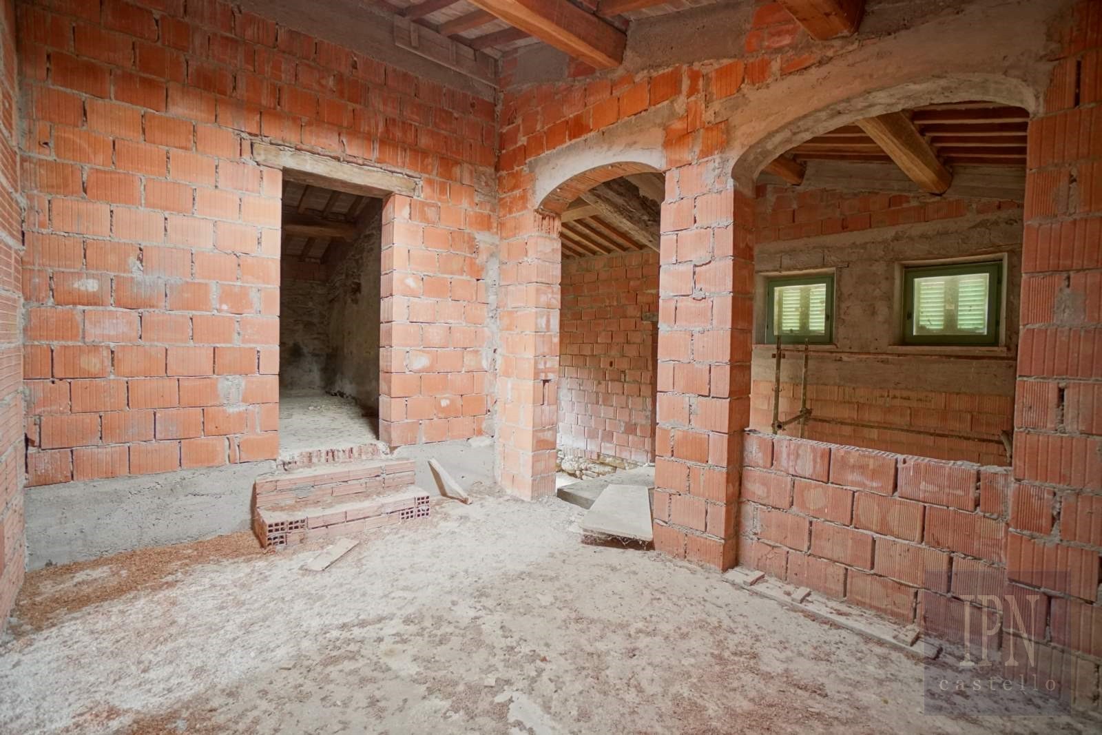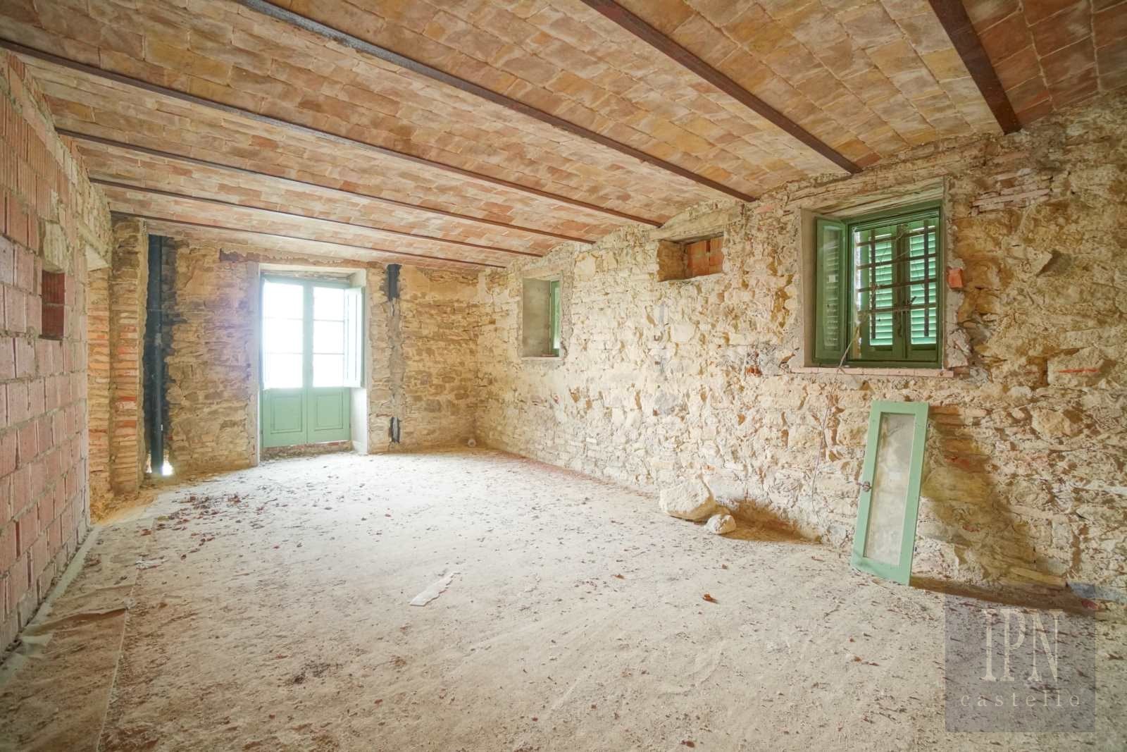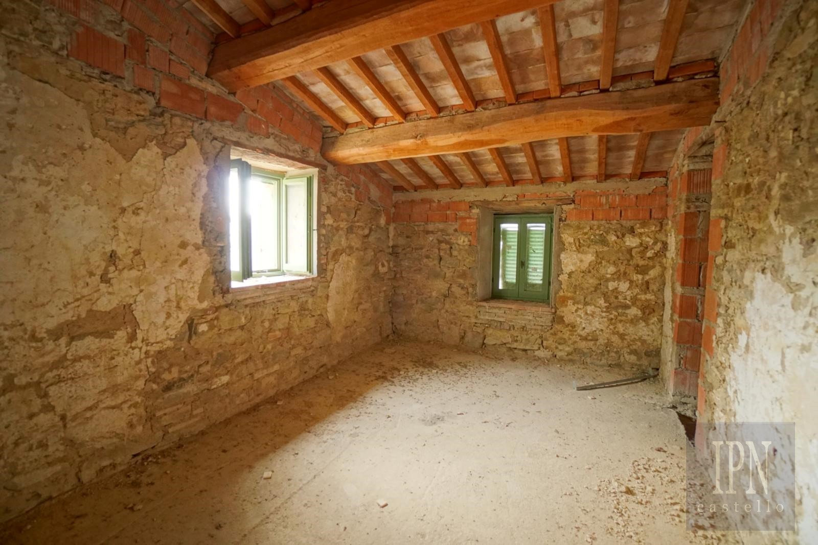 This 270 sqm stone farmhouse is located 15 minutes from Umbertide in the hills of Carpina. It has 5 bedrooms and 5 bathrooms, which can be configured according to the owner’s preferences. The living areas have ceilings with exposed beams and barrel vaults.