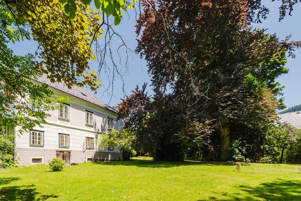 The park-like surroundings are particularly captivating, radiating absolute tranquility despite the proximity to the city center. The garden features mature trees and a small stream winding its way through the property. Despite this idyllic setting, the estate is located within an established urban environment. Gmunden’s city center, shopping facilities, and the lakeshore of the beautiful Traunsee are all within easy reach.