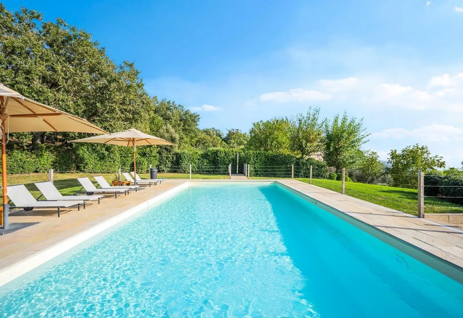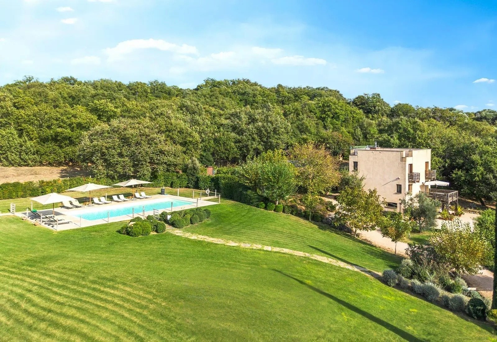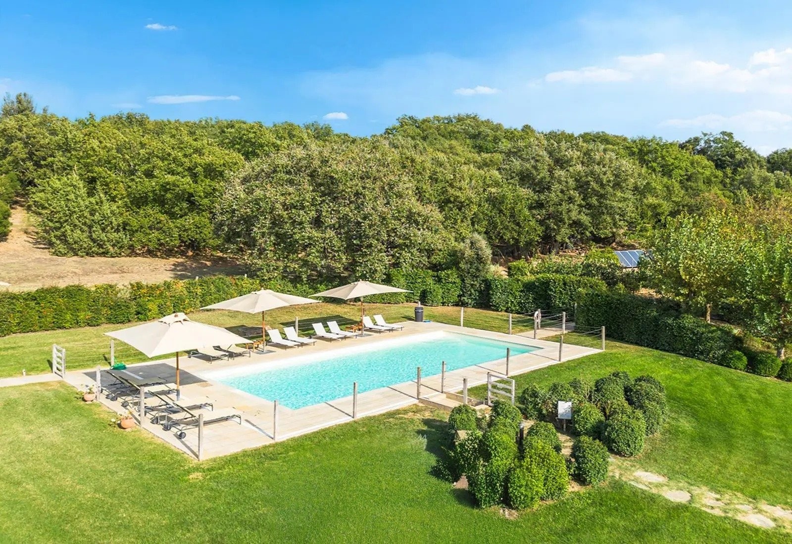 Nestled in the hills of Maremma, between the UNESCO World Heritage Val d'Orcia and Monte Amiata, Villa Cerimano comprises three independent residences on 1.5 hectares of gardens, woodland, and wellness areas, designed according to sustainable architecture principles.