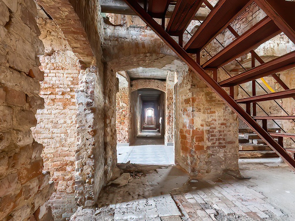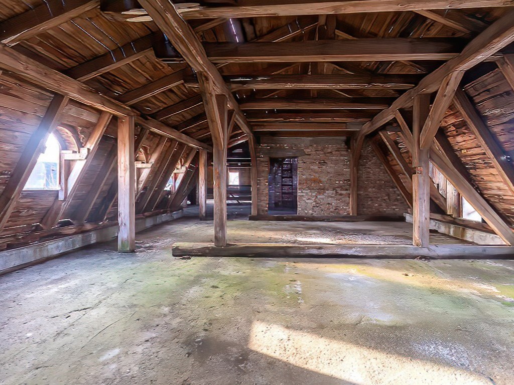 The ensemble is listed in the registry of historic monuments maintained by the Voivodeship Office for Monument Protection. Significant modernization work has already been carried out: wooden beam ceilings were replaced with prefabricated elements, old staircases renewed, and openings created for smoke vents. All interventions were coordinated with the heritage authorities.