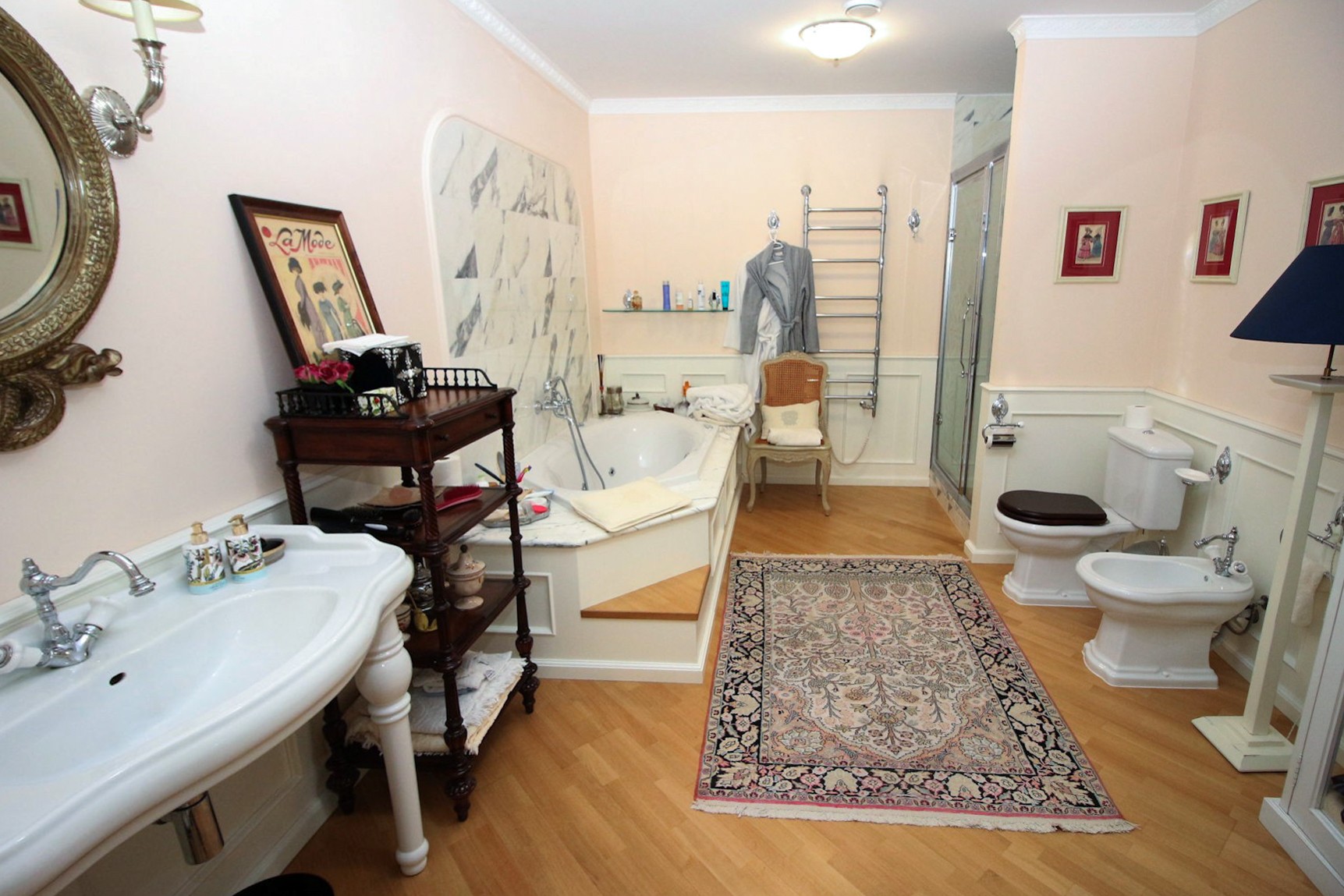 It occupies a prime position adjacent to the historic Imperial Spa (Císařské lázně) in the heart of the UNESCO-listed city centre. The current layout comprises three bedrooms, a spacious living room, three bathrooms, and a separate kitchen with direct access to the large terrace. Two walk-in wardrobes provide ample storage. The versatile floor plan also allows for configuration as a four-bedroom residence with a dedicated kitchen and dining area.