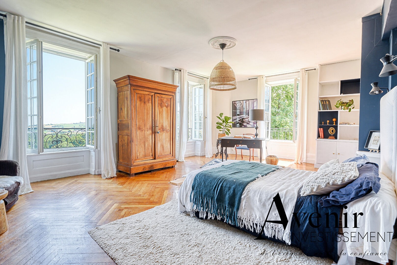 The property is arranged over three levels, each providing approximately 1,935 sq ft of living accommodation, situated within an expansive 1.98-acre plot with unobstructed views across the Monts du Lyonnais.
