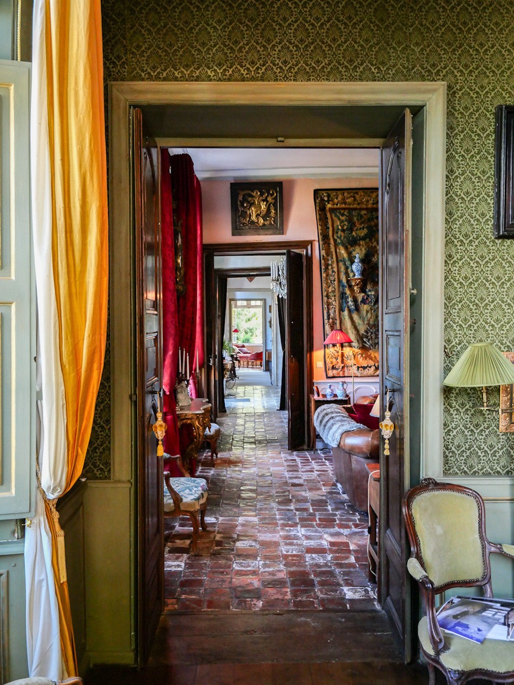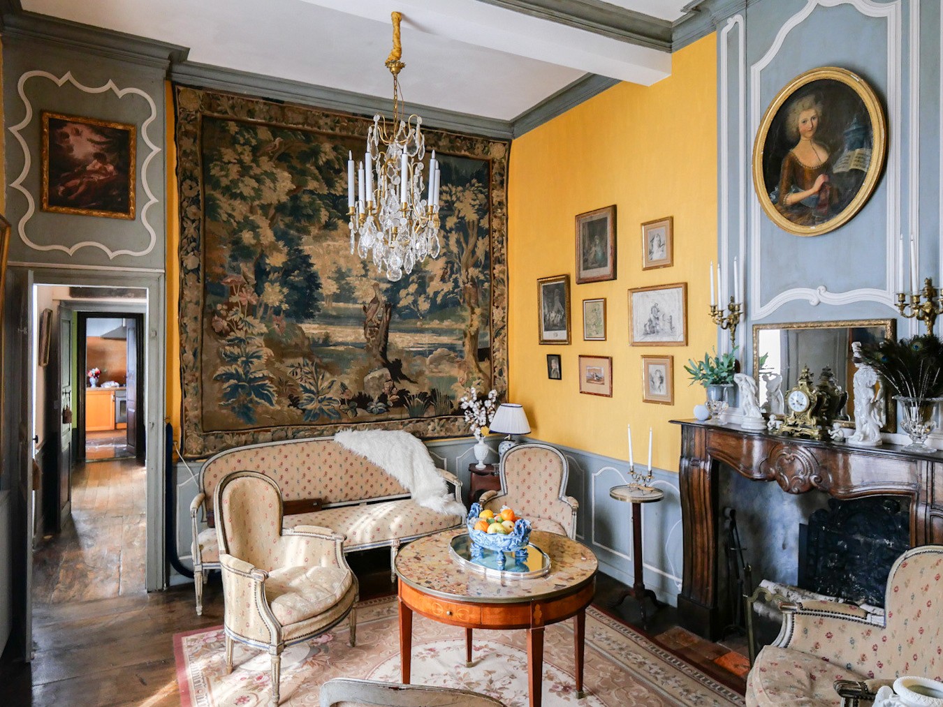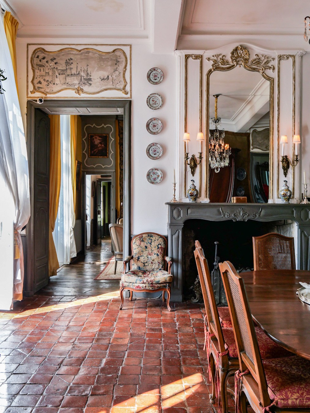 Built around 1750, the château has survived in remarkable authenticity, preserving its original wooden floors, stone and terracotta tiles, woodwork, fireplaces, wainscoting, overmantel mirrors, and double doors. Its balanced, human-scale architecture is bathed in natural light, reflecting the refined art of 18th-century country living.