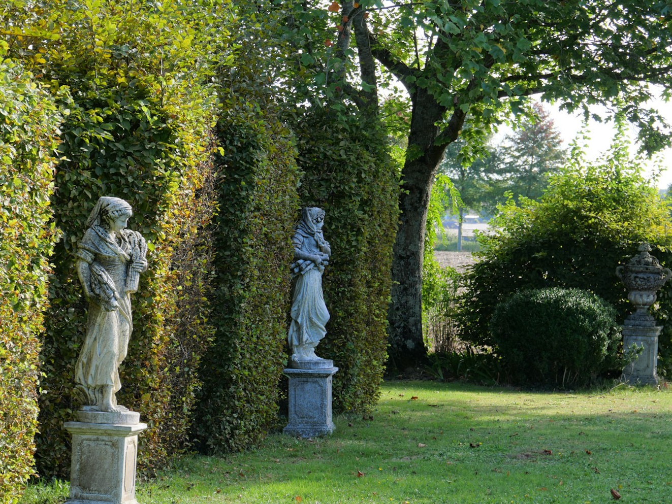 The gardens, planted 20 years ago, have reached full maturity and display exceptional quality. Refined boxwood parterres and topiary face the château, while a terrace adorned with parterres overlooks the village. Across a small bridge over the former moat, a romantic streamside garden and an open-air theater with semicircular seating unfold around a pond lined with schist. Monumental yew pilasters, hornbeam and beech hedges, and a green labyrinth of beech hedges bring architectural grandeur to the grounds. Sculpted vistas and a swimming pool integrated into ornamental ponds complete this landscaped masterpiece. The château has three entrances with 18th-century pillars and gates, and a plot outside the grounds can be used for parking.