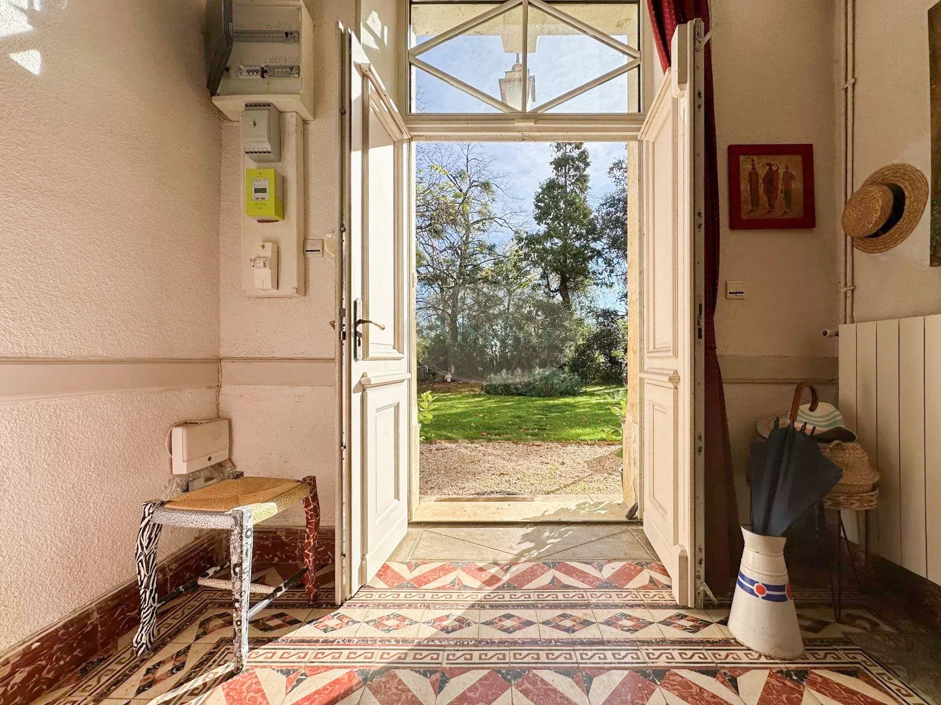 The property also includes a large 45 m² attic and an adjoining barn. The park-like grounds, suitable for a pool, include a pavilion, a vegetable garden area, a well, a pond and a shelter for two horses.