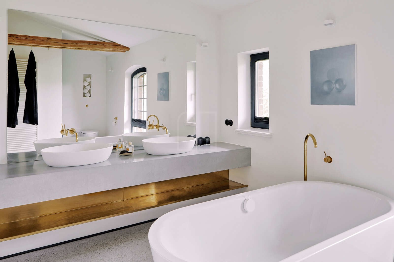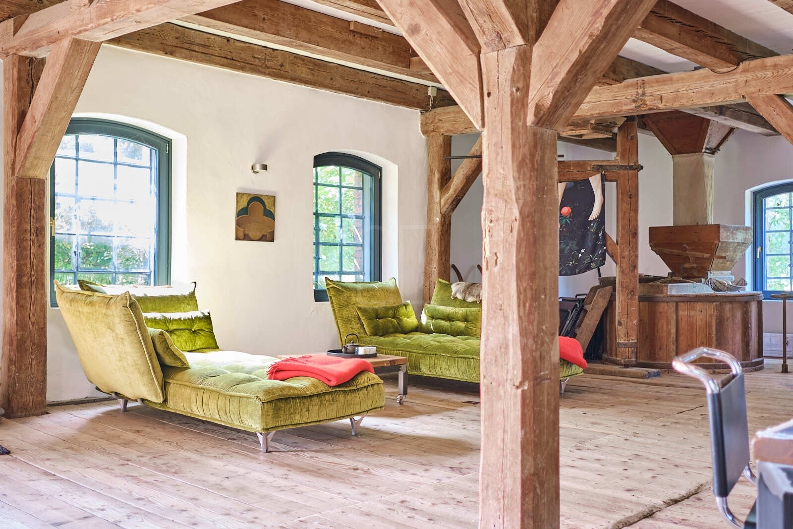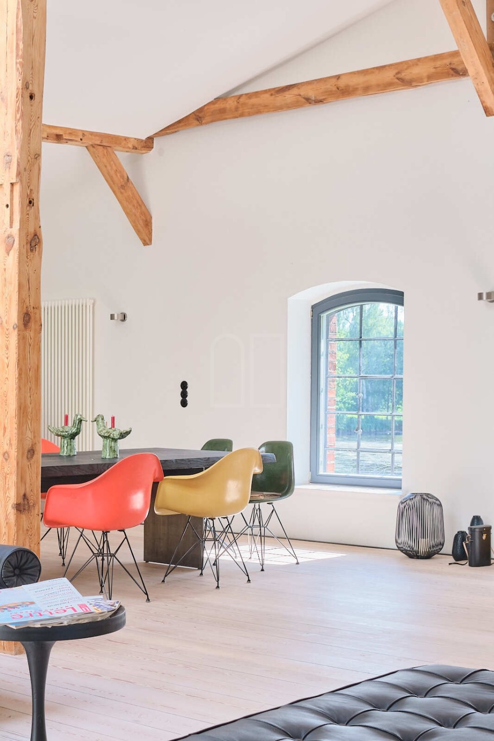 Von der Wassermühle zum Designer-Denkmal: Dieser geschmackvoll sanierte Landsitz bietet viel Platz zum Davonträumen. Auf drei Ebenen finden sich einzigartige Wohnräume zwischen historischem Backstein, modernen Stahlelementen und maßgefertigten Einbauten aus Eiche und Sichtbeton.