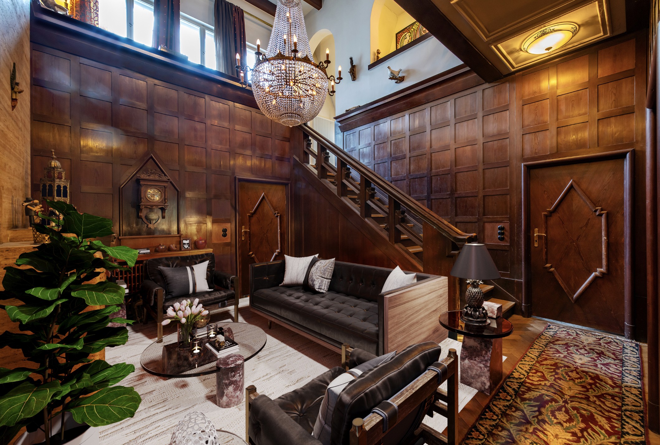 Entrance Hall Grand staircase Fireplace Gallery Terrace Winter garden High ceilings