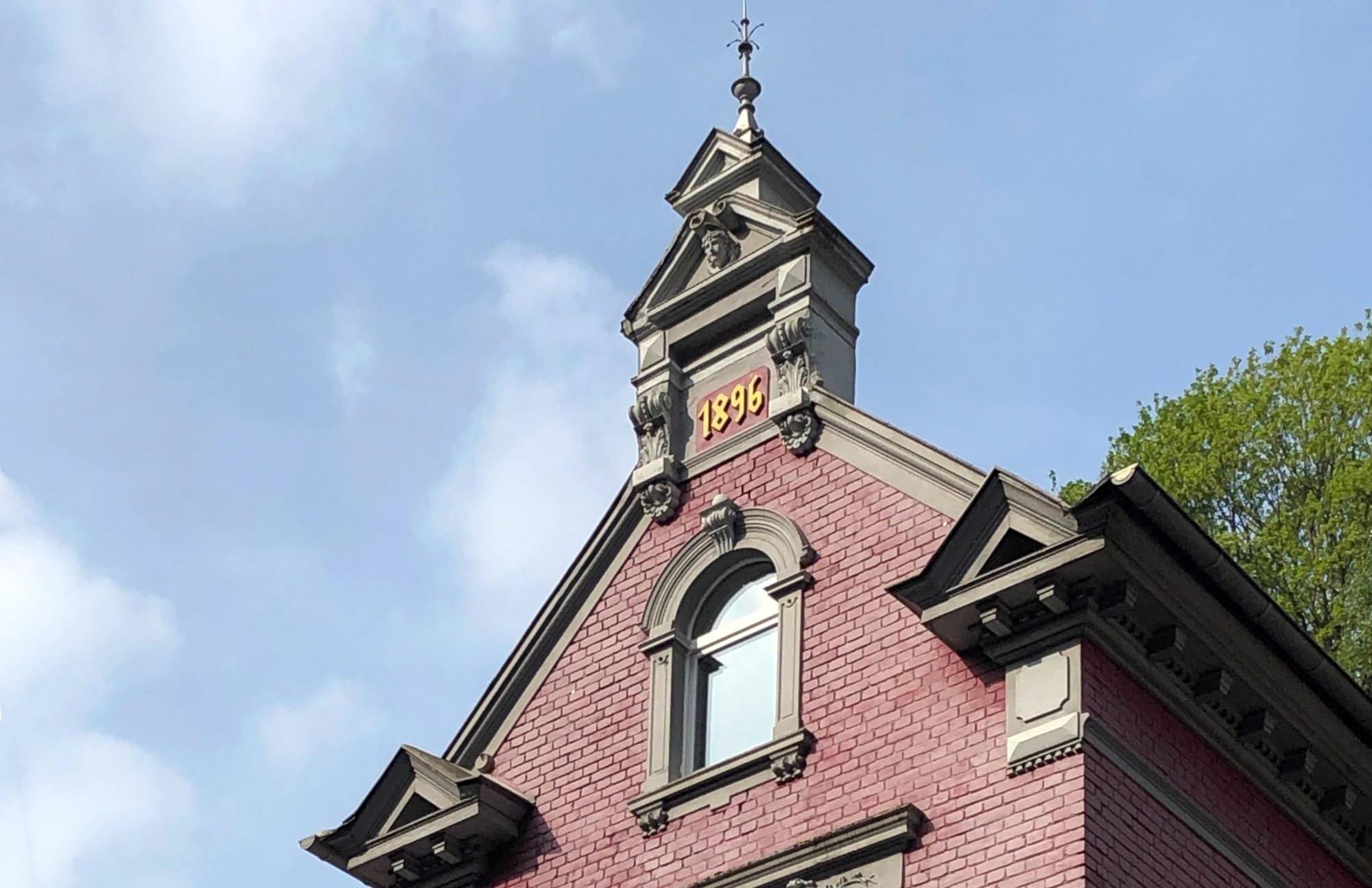 The historical architecture of this villa is characterised by its distinctive features, such as the gable roof with elegant gables and exposed brickwork. Classical details, including a cornice and windows with segmental arches, give the building a distinctive charm. The year 1896 is engraved in the edicula, marking the year of construction.