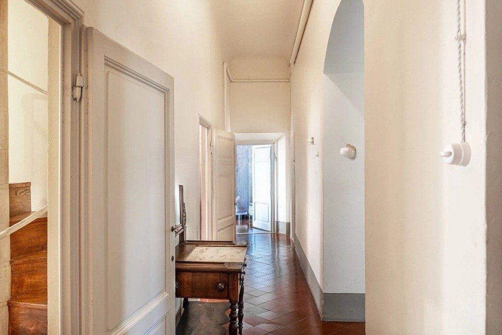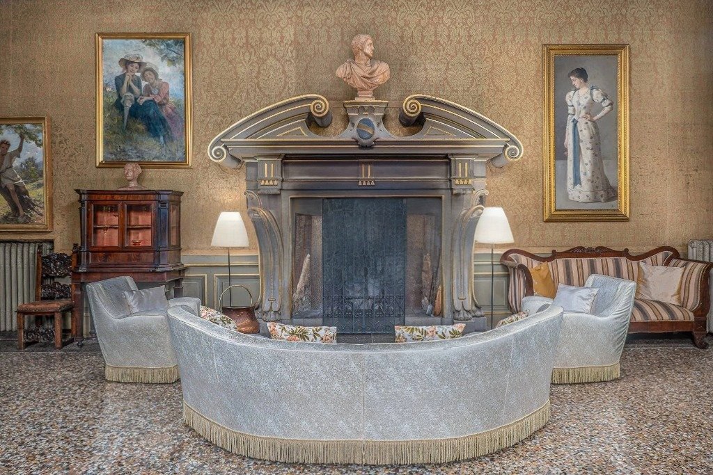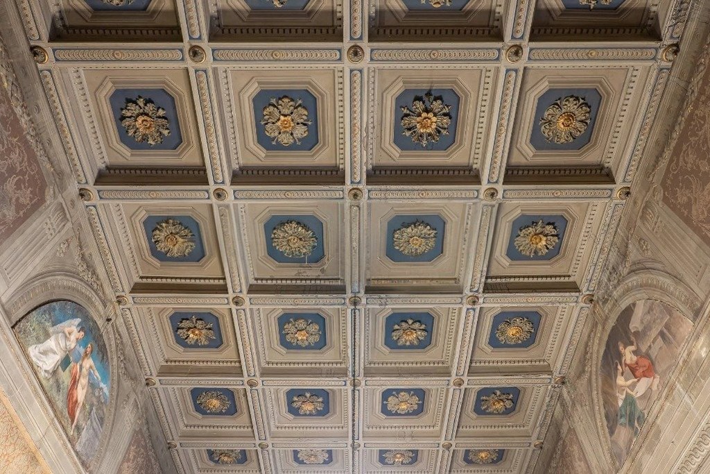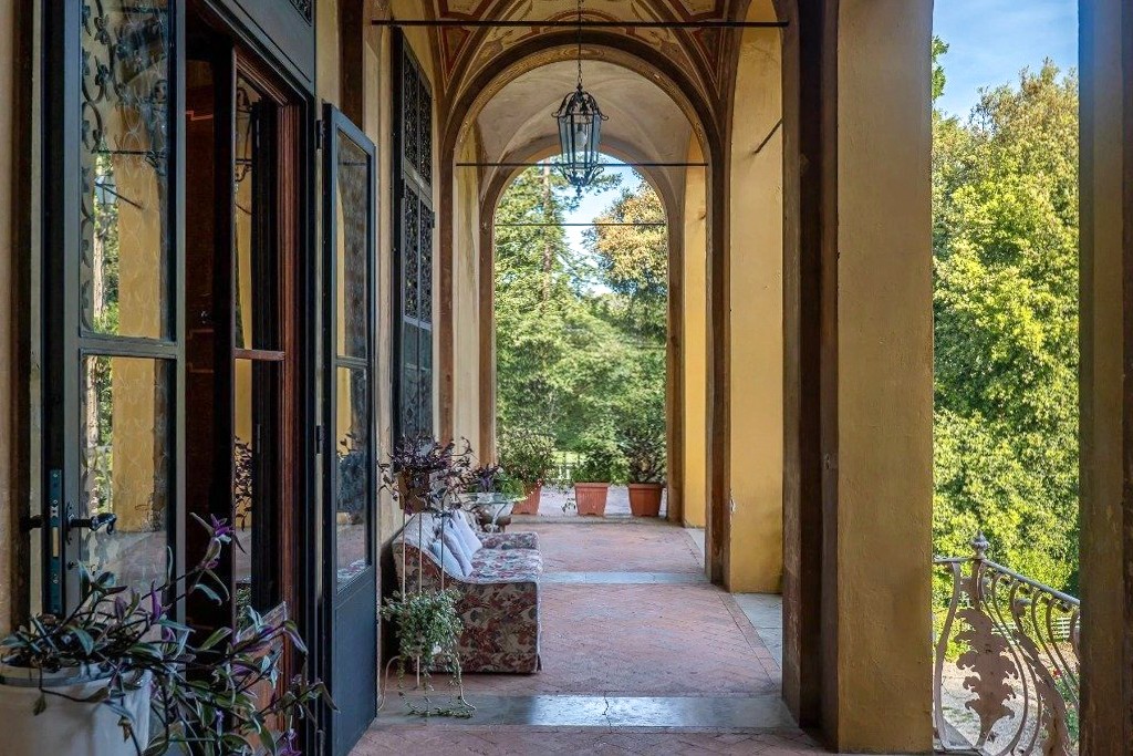 One of the loggias features a vaulted fresco attributed to Galileo Chini, the Mugello-born painter and ceramist known for his Art Nouveau work.