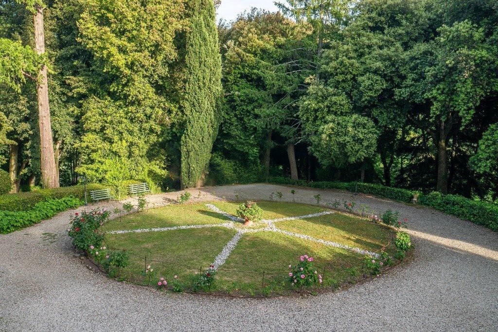 The estate is set within an English-style park with mature trees, including rare species. The grounds include pathways, staircases, grottoes and fountains. A limonaia (lemon house) of approximately 150 m² stands separate from the main villa, showing architectural influence from the Buontalenti-Del Moro tradition.