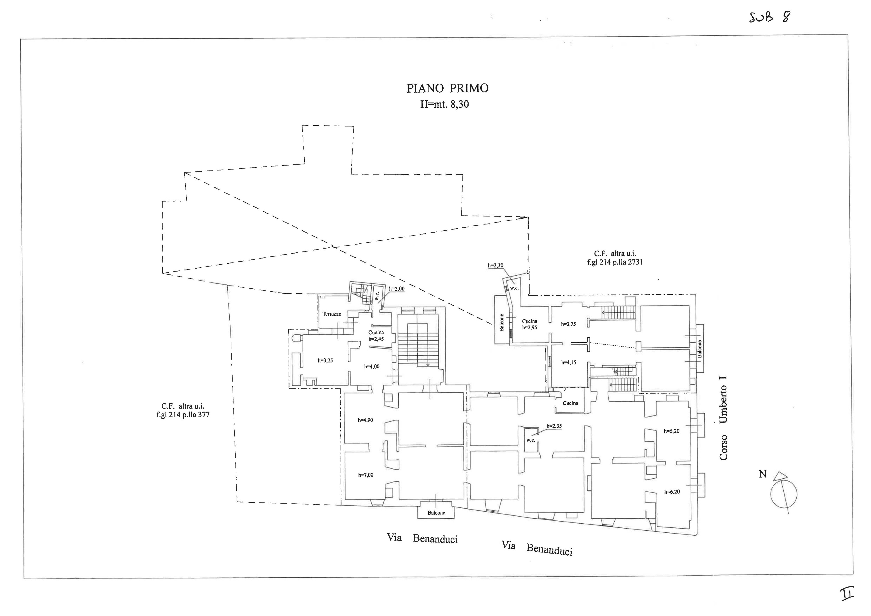 The Piano Nobile covers approximately 705 m², with the ground floor extending to around 714 m², partly currently used for commercial purposes. A true highlight is the private internal garden of roughly 425 m², a rare feature in the old town. Additional spaces include technical volumes on the upper level (about 200 m²) and terraces and balconies totalling around 500 m².