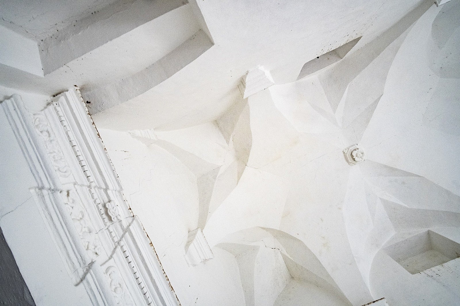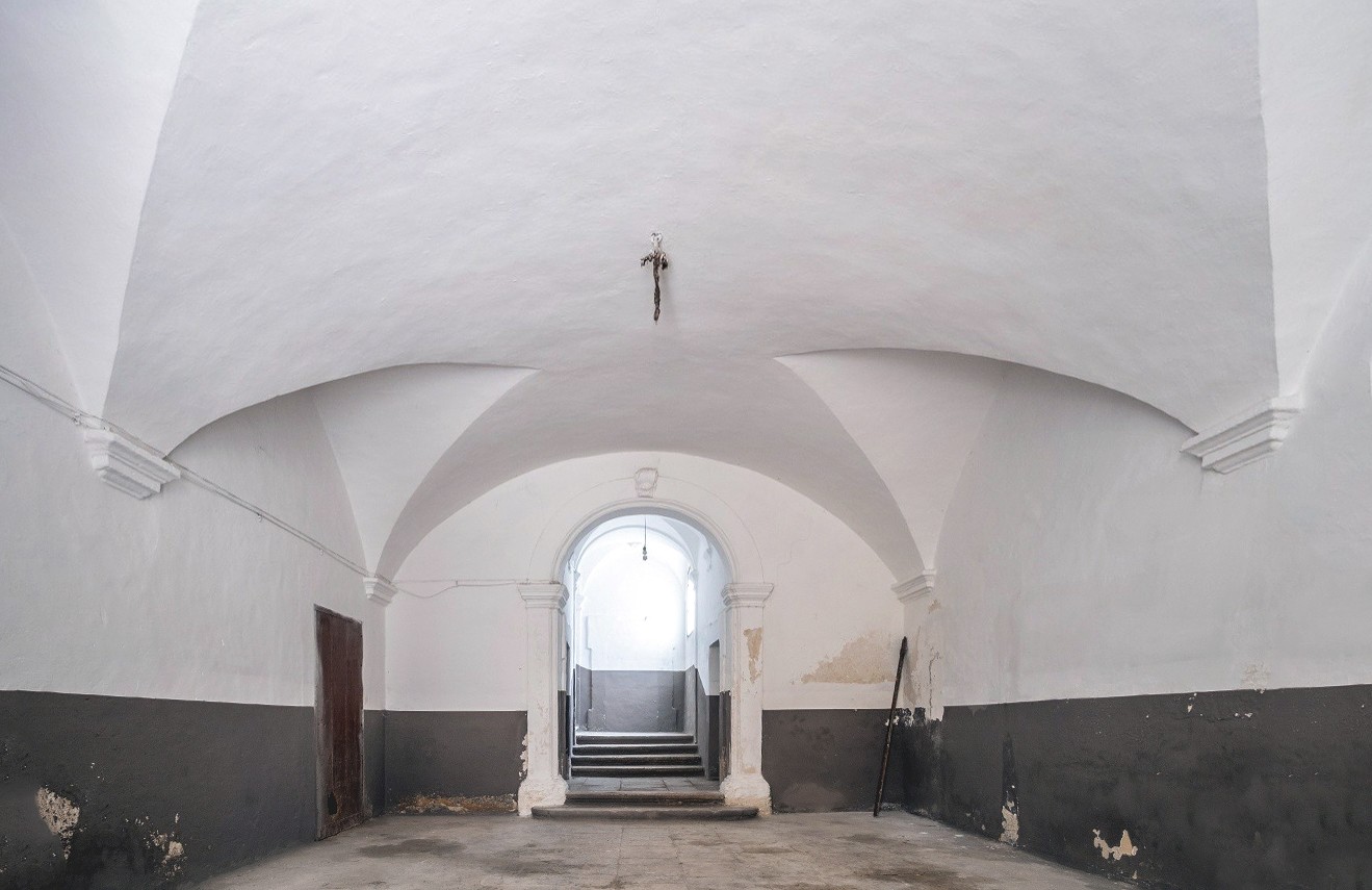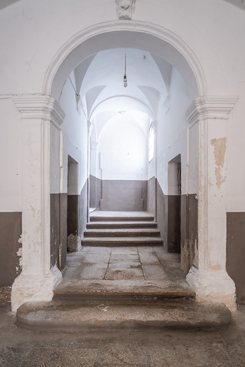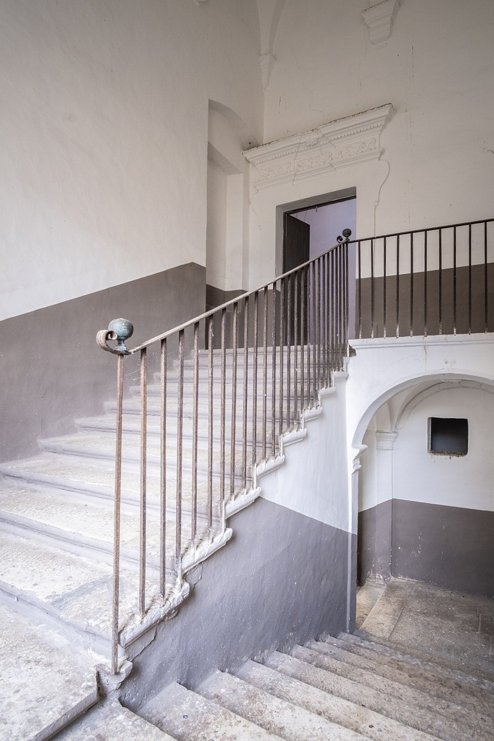 The palace extends over two above-ground levels. The ground floor was originally used for storage, while the Piano Nobile forms the principal representative floor. The main entrance, through a characteristic portal topped by a balcony, opens into a spacious entrance hall with a star-shaped vaulted ceiling and traditional Chianche stone flooring. An impressive stone staircase leads to the Piano Nobile, featuring large vaulted rooms, considerable ceiling heights, and historic 17th-century wooden doors.