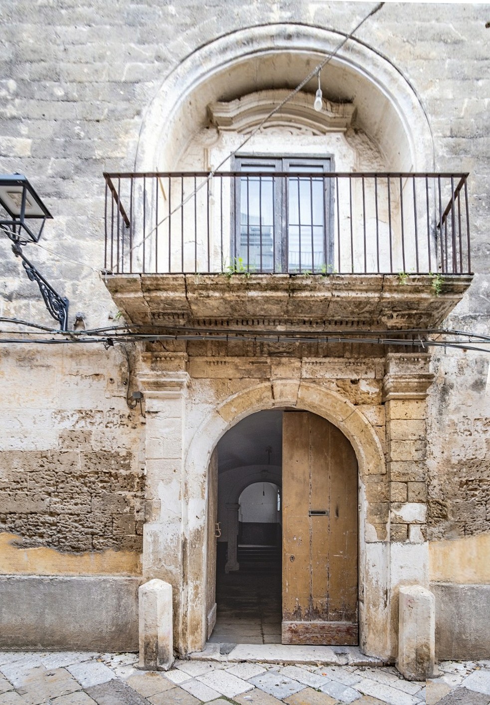 The exact year of construction is not recorded, but it is certain that the palace stands on the site of the former Porta San Nicola, already marked on Centonze’s maps of 1643. Over the centuries, the building has been adapted to the evolving urban fabric, as evidenced by sealed openings, altered ground-floor entrances, and later-added balconies.