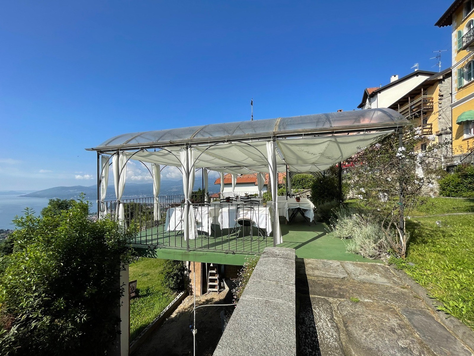 Die große Terrasse sorgt für entspannte Momente am Lago Maggiore. Die Immobilie ist sowohl als privater Wohnsitz als auch für gewerbliche oder touristische Zwecke ideal geeignet.