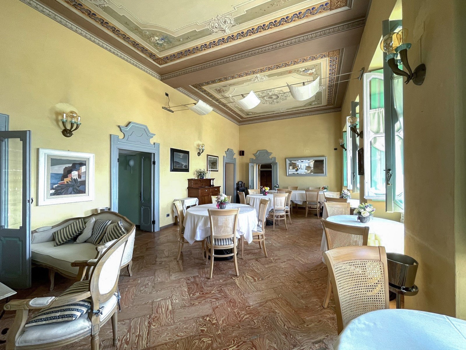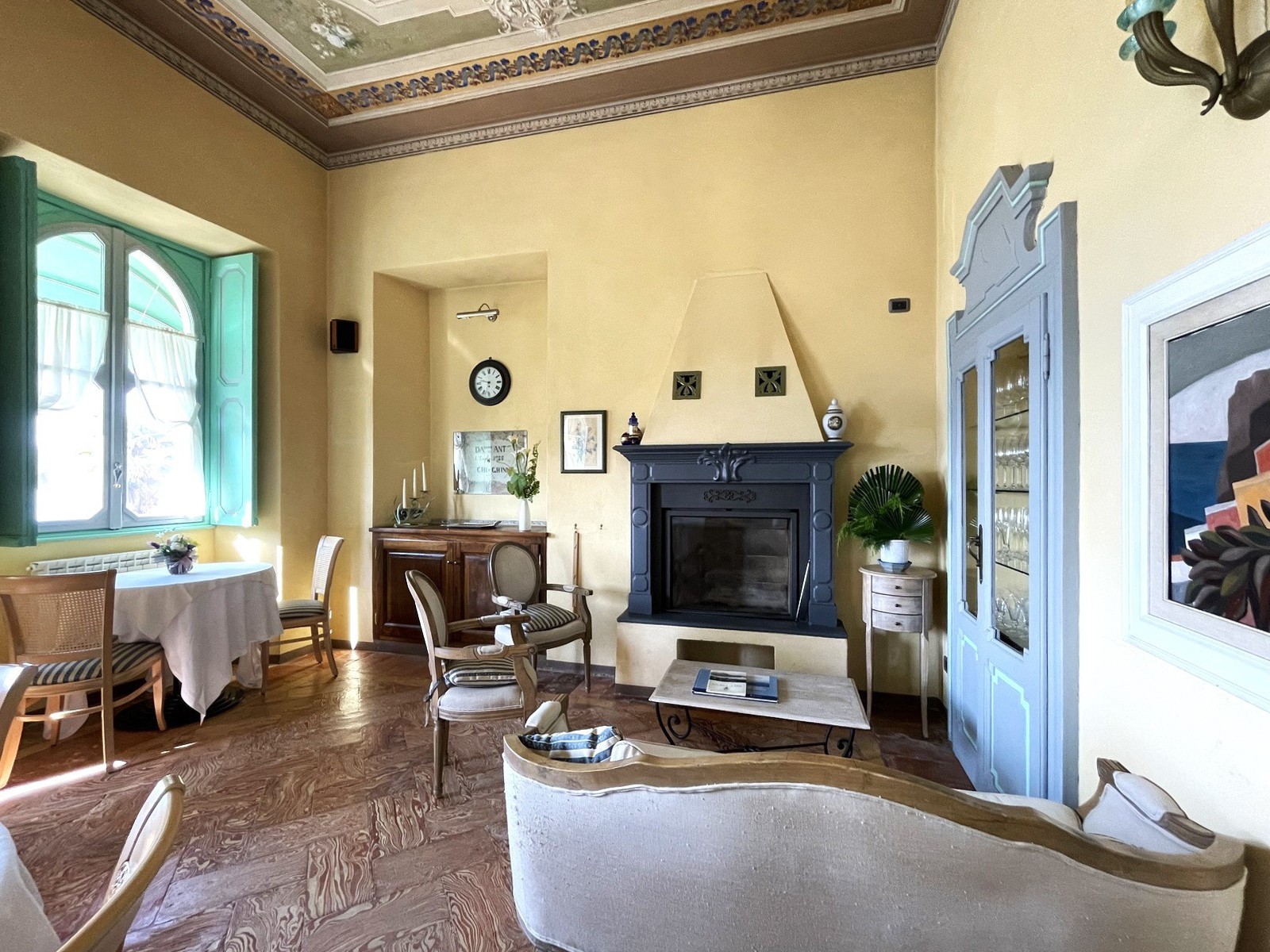 Entrance hall Fireplace Balcony Frescoes Terrace Stucco decorations Courtyard
