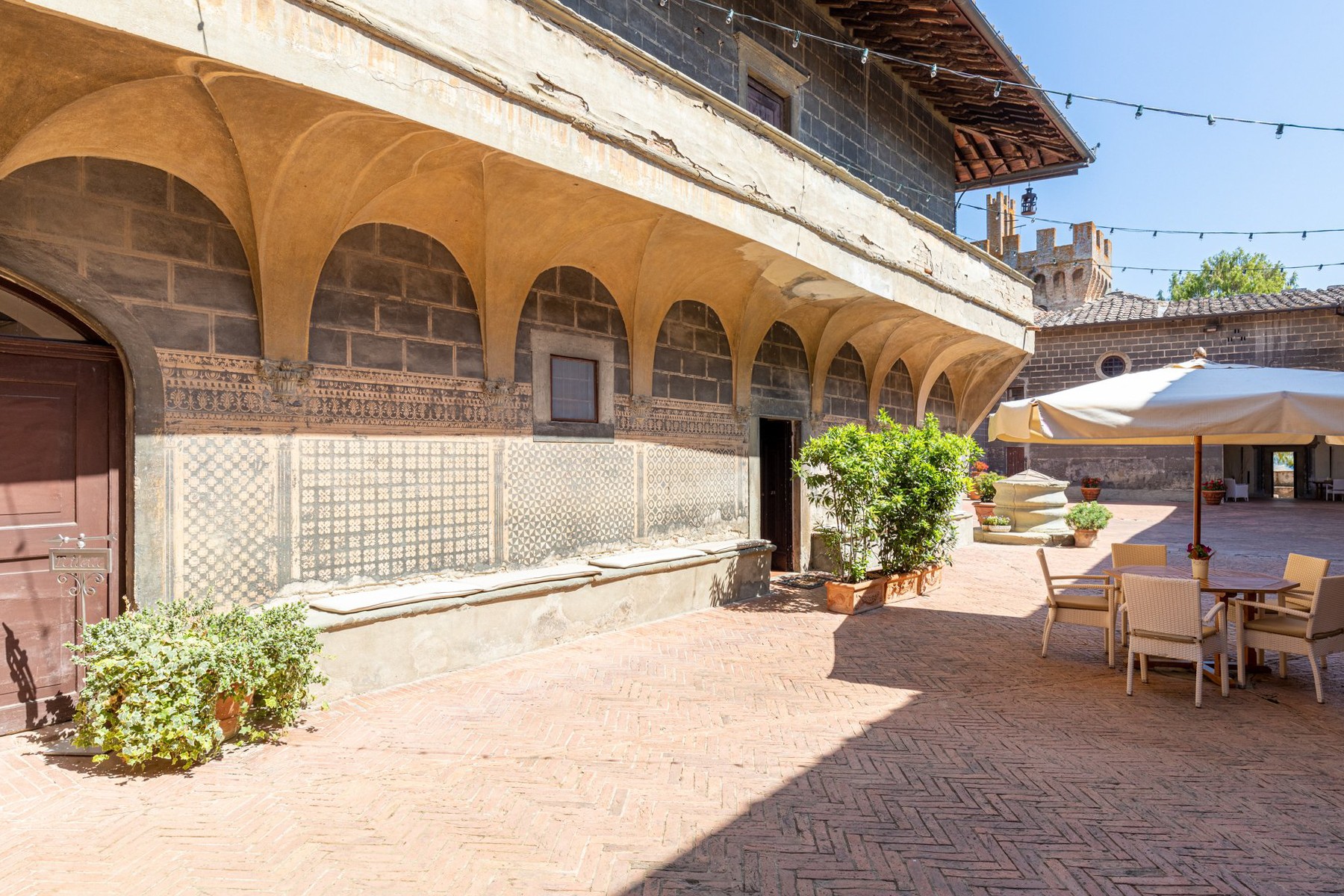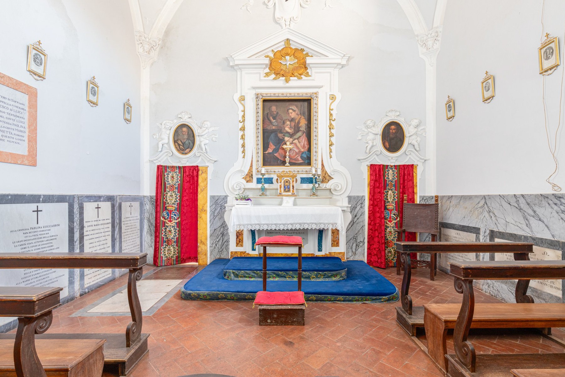The basement level houses a historic tufa stone cellar with stable climatic conditions, ideal for wine storage and aging. This level also features a consecrated private chapel that continues to be available for wedding ceremonies, adding particular value for exclusive events. The preserved towers and perimeter walkways are accessible and provide sweeping views across the estate and surrounding landscape.