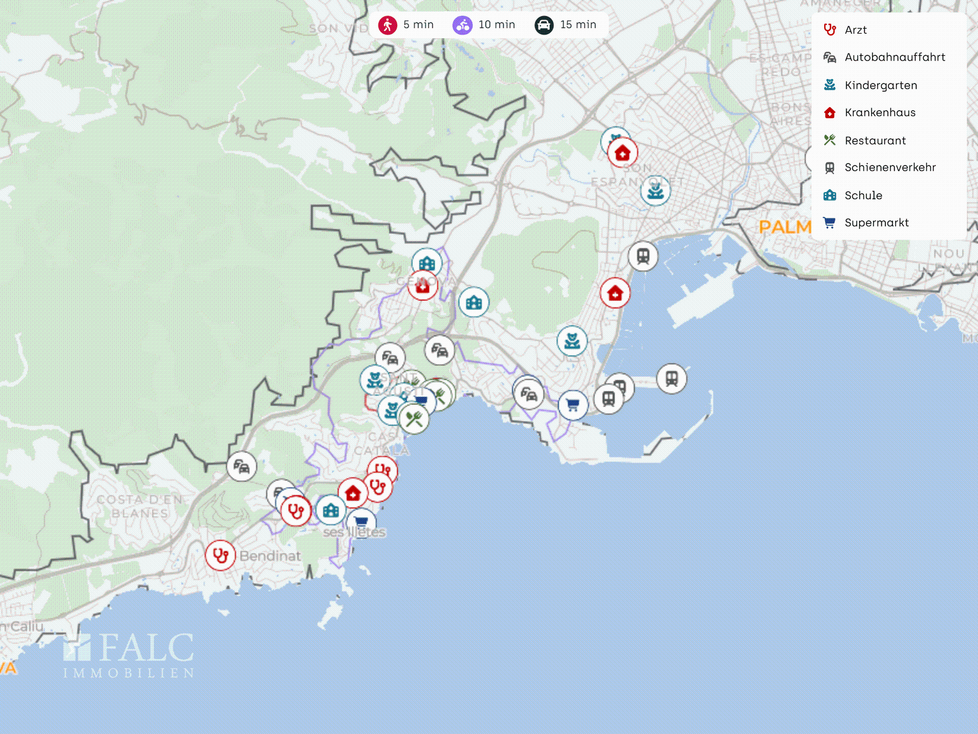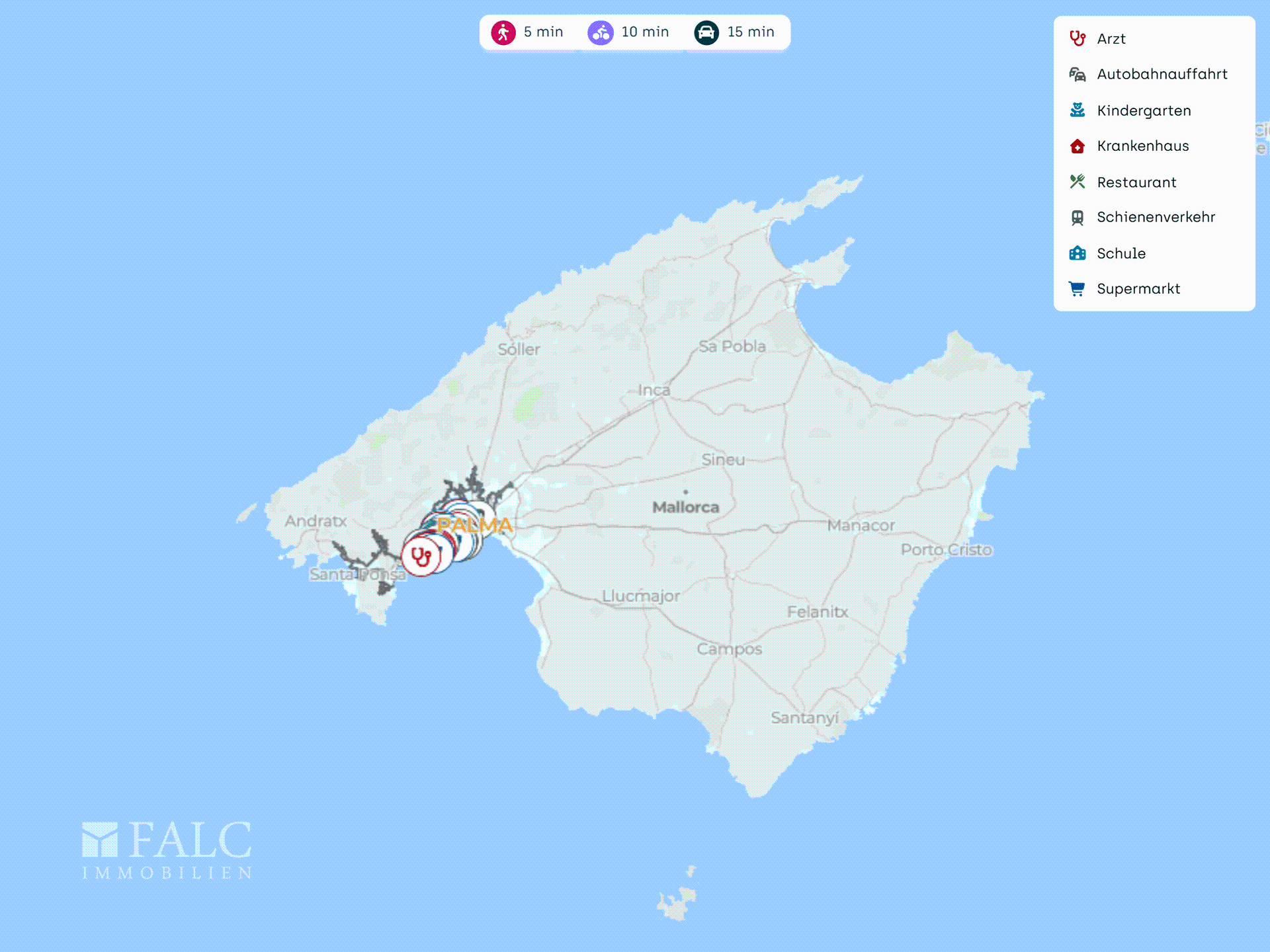 Eine ärztliche Versorgung ist im Umfeld vorhanden. Kliniken wie die Clínica Juaneda und die Clínica Rotger sind mit dem Auto erreichbar.