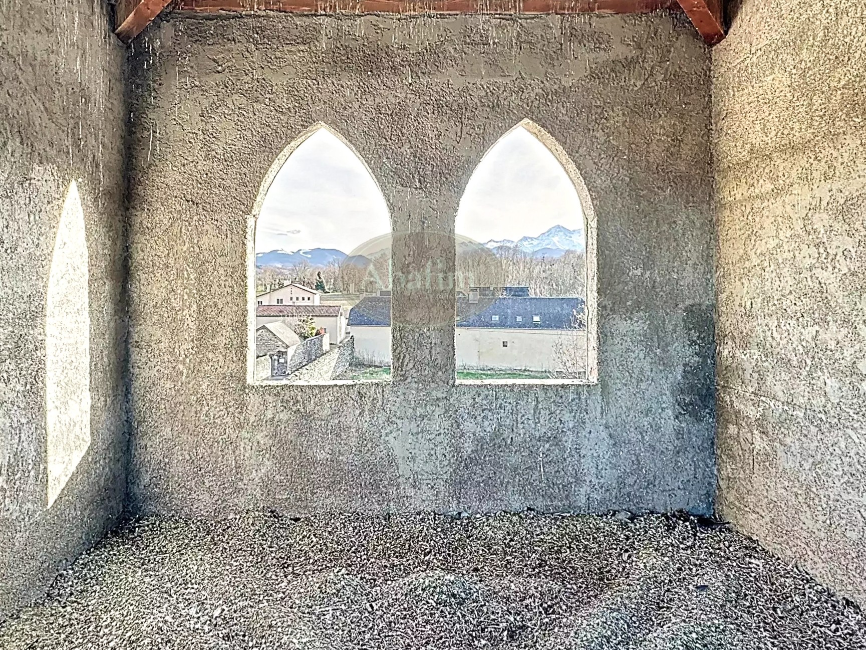 The second floor under the pitched roof offers two rooms of 35 m² (377 sq ft) and 27 m² (290 sq ft), both with Pyrenees views, and access to the tower (16 m² / 172 sq ft).