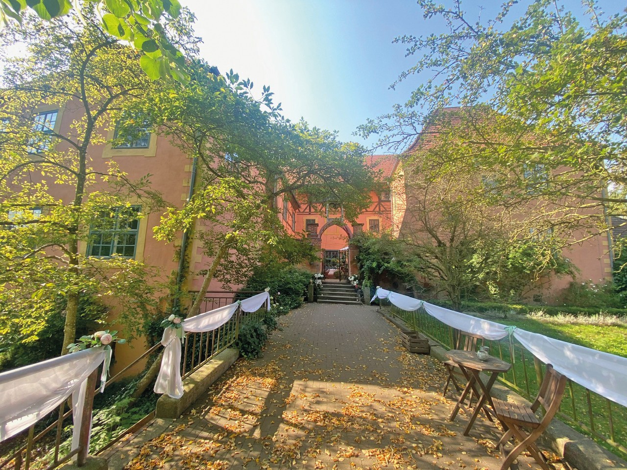 Es gibt Orte, die man nicht einfach betritt – sondern erlebt. Die Wasserburg ist einer dieser Orte. Eine Oase für die Seele. Ein Anwesen, das sich nicht aufdrängt, sondern einlädt – zum Ankommen, Gestalten, Träumen. Die robusten Mauern erzählen Geschichte, die uralten Bäume bieten Schutz und bringen den Geist wieder in Einklang mit der Natur. Die Ursprünglichkeit, die vielfältige Tier- und Pflanzenwelt, die frische Luft, ein klarer Sternenhimmel und die inspirierende Atmosphäre schaffen Raum, um zu heilen und zu wachsen. Es gibt weitläufige Erholungsflächen und einen alten Baumbestand. Der Park im englischen Stil lädt zu Spaziergängen und entspannten Stunden ein. Es gibt einen kleinen reetgedeckten Pavillon, eine (z.Zt. sanierungsbedürftige) Brücke über den Burg-Teich zu einem urigen Lindengang. Diese Orte dürfen teilweise aus dem Dornröschenschlaf geweckt werden. Im burgeigenen Wald befindet sich mit der ca. 800-jährigen Eiche ein ausgezeichnetes Naturdenkmal. Ein besonderer Platz z.B. für Trauungen.