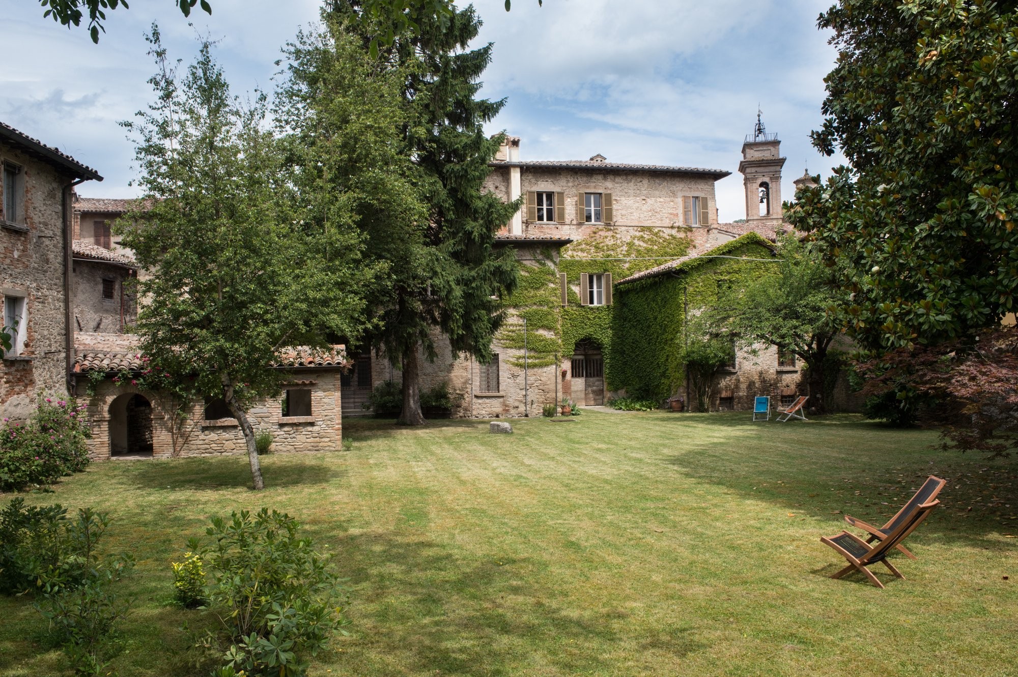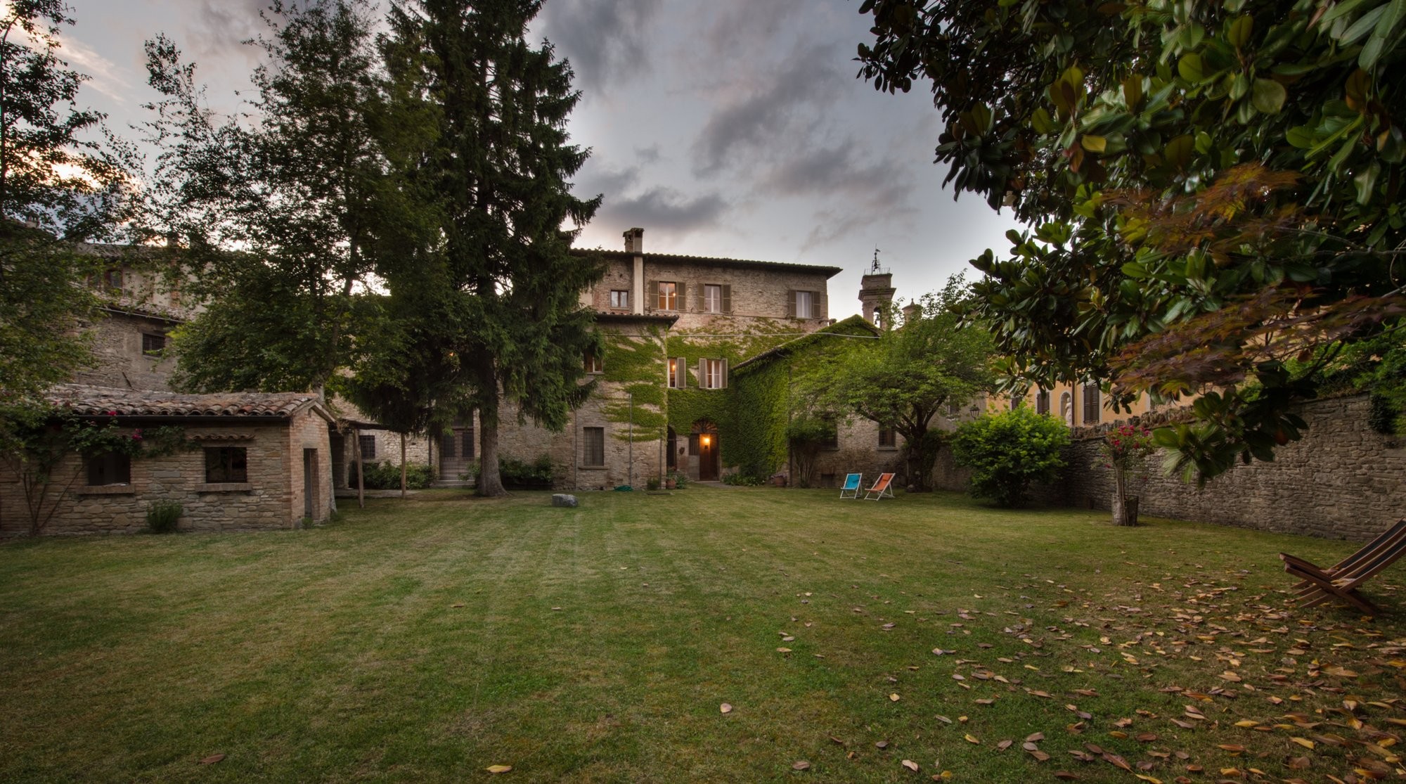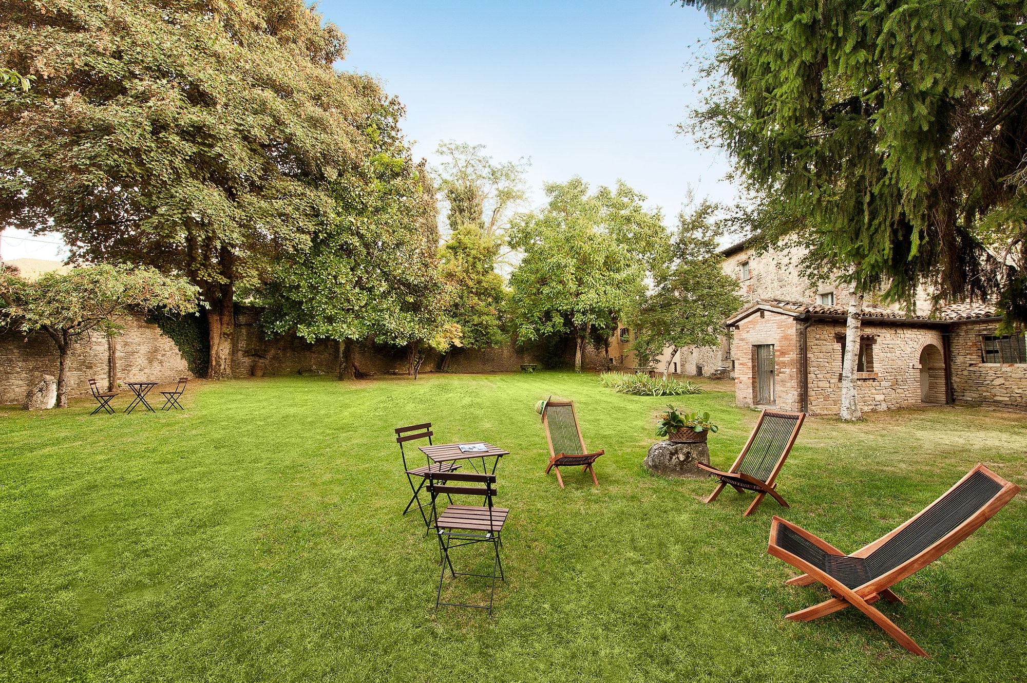 Palazzo Merletti, a 14th-century palace in the heart of Mercatello sul Metauro, stands as a masterpiece of Italian heritage. Located in the village’s main square, surrounded by the rolling hills of Montefeltro, this historic residence offers a timeless journey into the Renaissance. Its grand entrance leads through a graceful corridor to a serene inner garden, featuring roses, fruit trees, and ancient foliage. This is a tranquil retreat steeped in history.