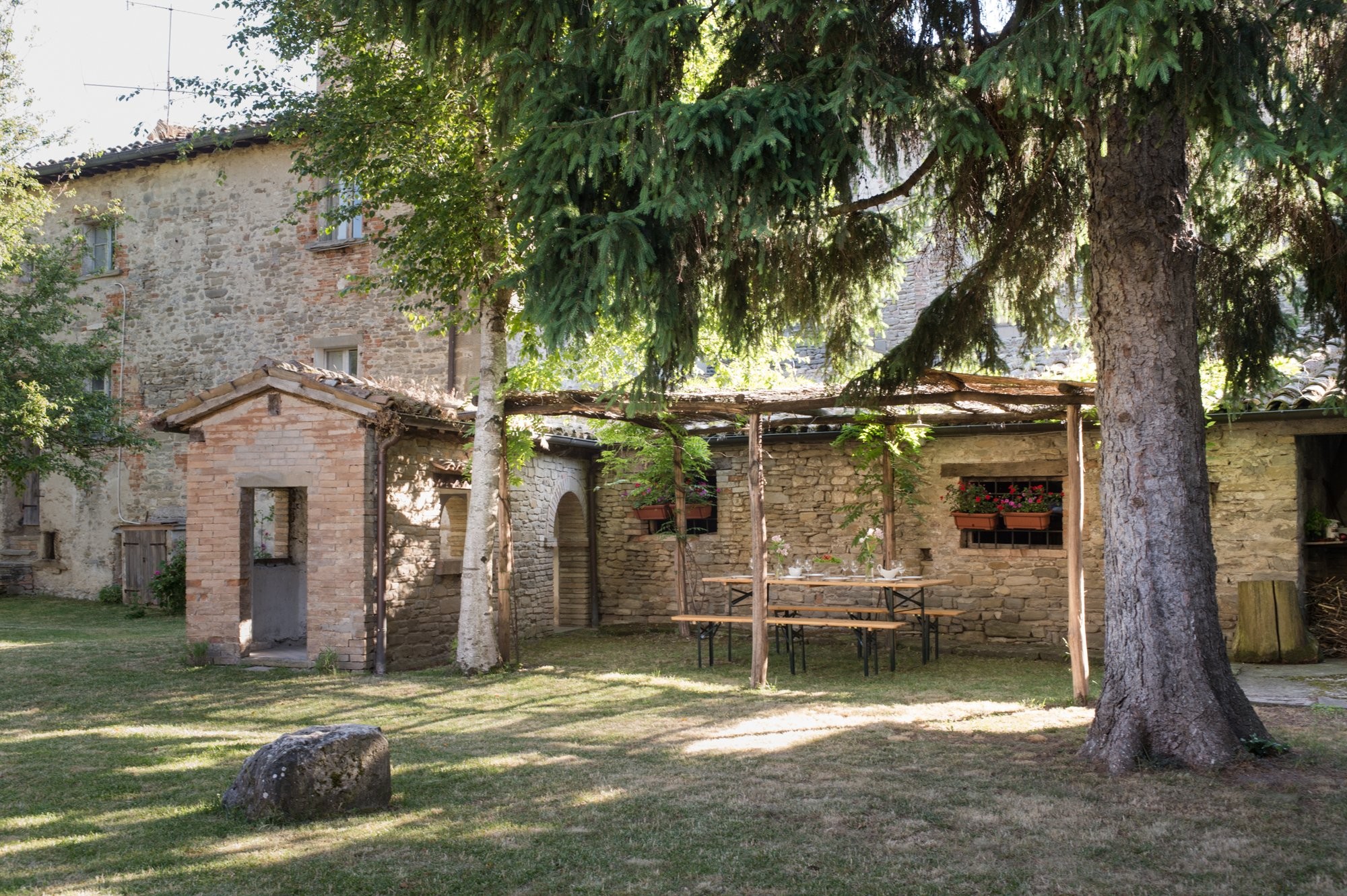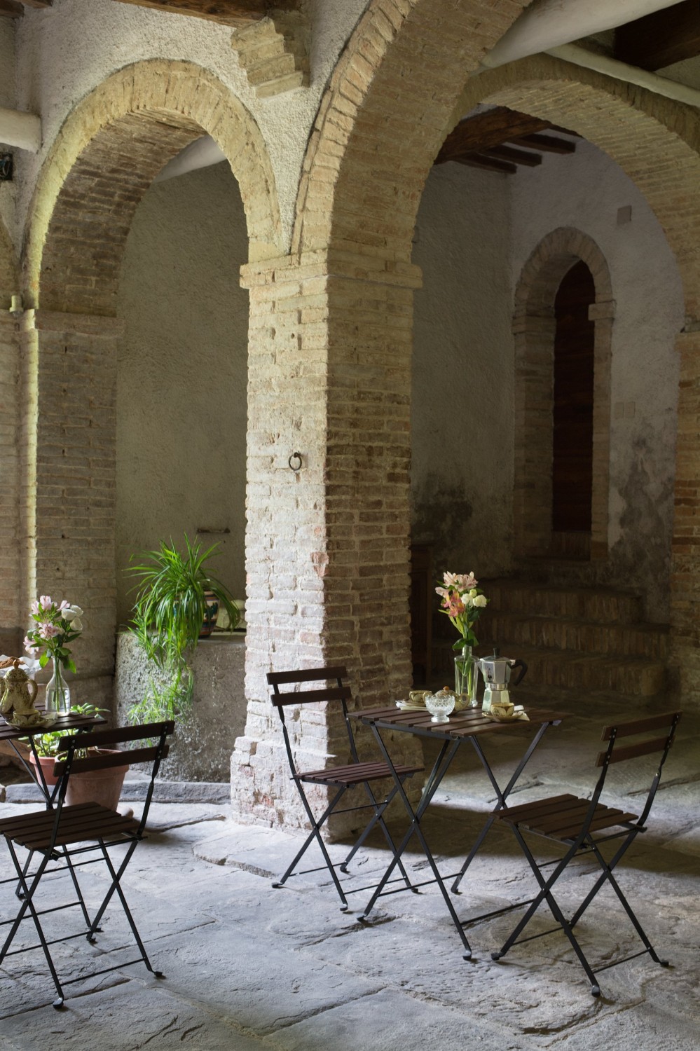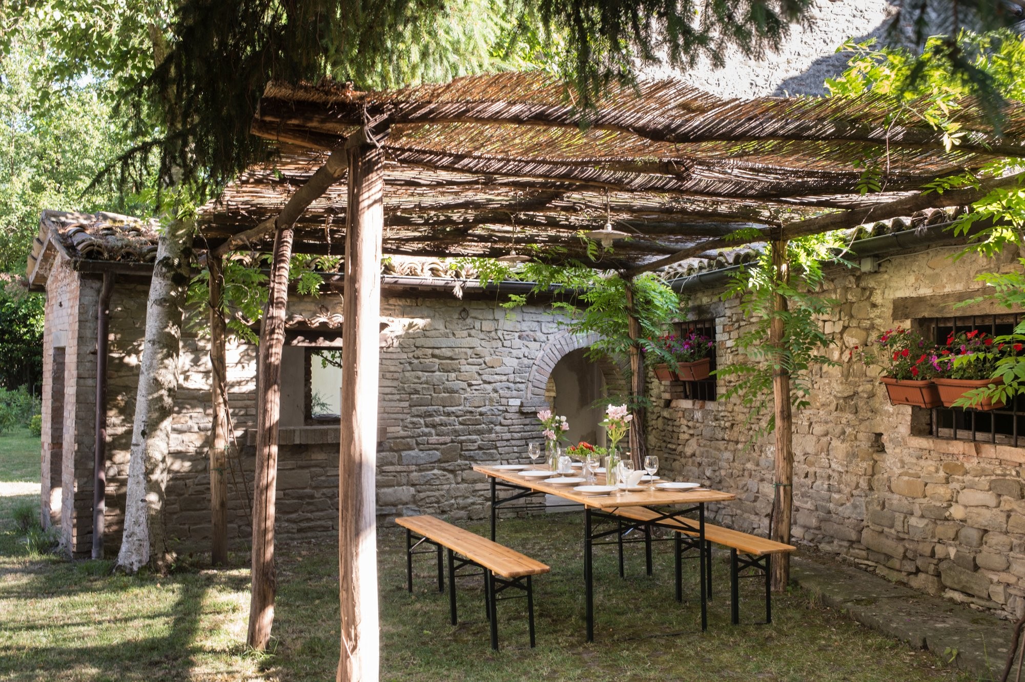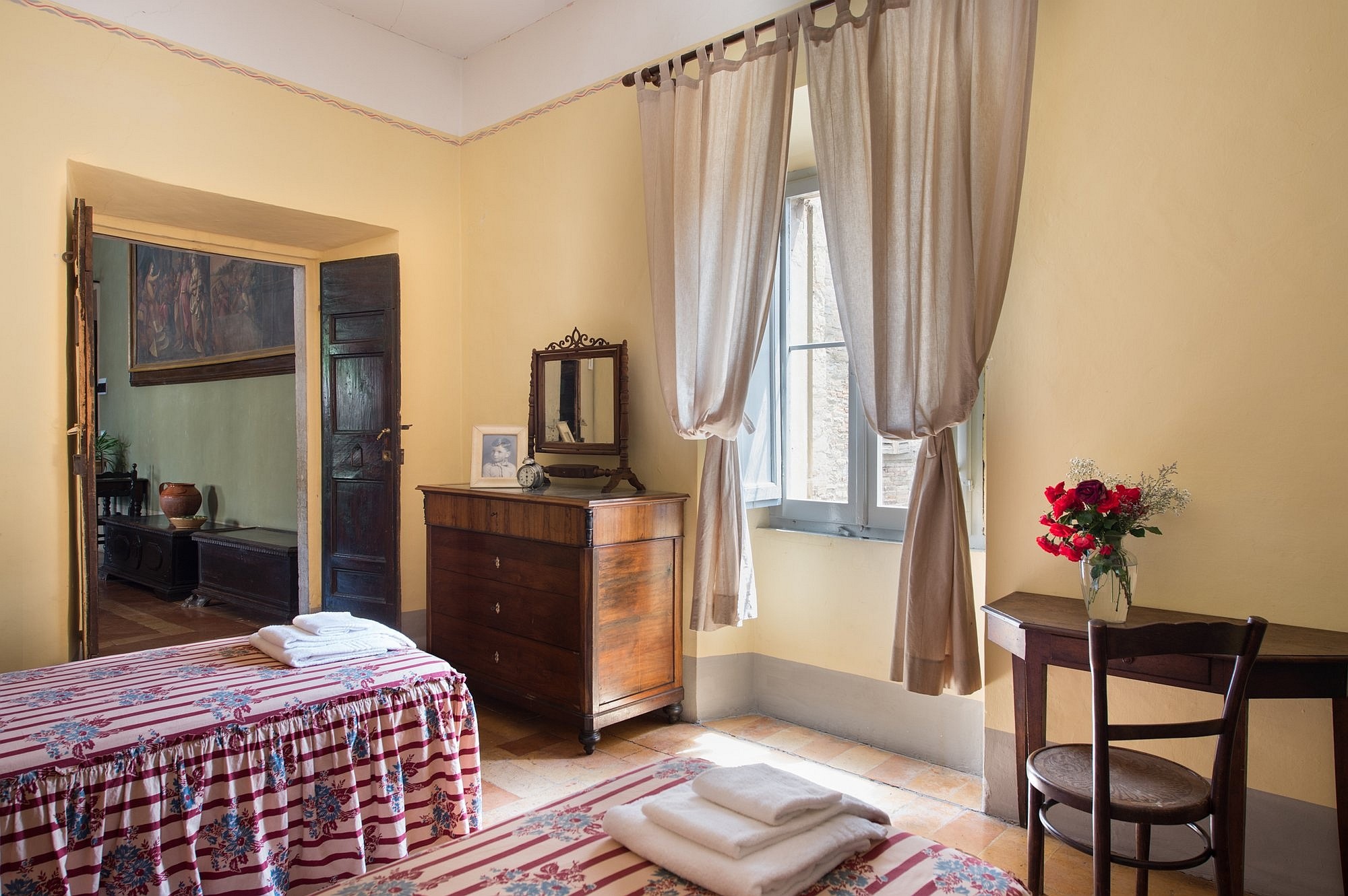 Palazzo Merletti, a 14th-century palace in the heart of Mercatello sul Metauro, stands as a masterpiece of Italian heritage. Located in the village’s main square, surrounded by the rolling hills of Montefeltro, this historic residence offers a timeless journey into the Renaissance. Its grand entrance leads through a graceful corridor to a serene inner garden, featuring roses, fruit trees, and ancient foliage. This is a tranquil retreat steeped in history.