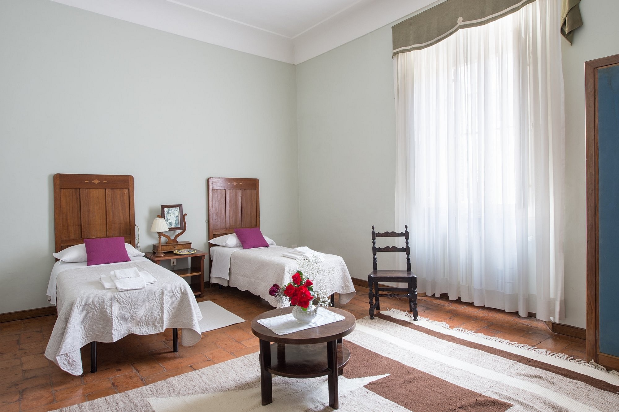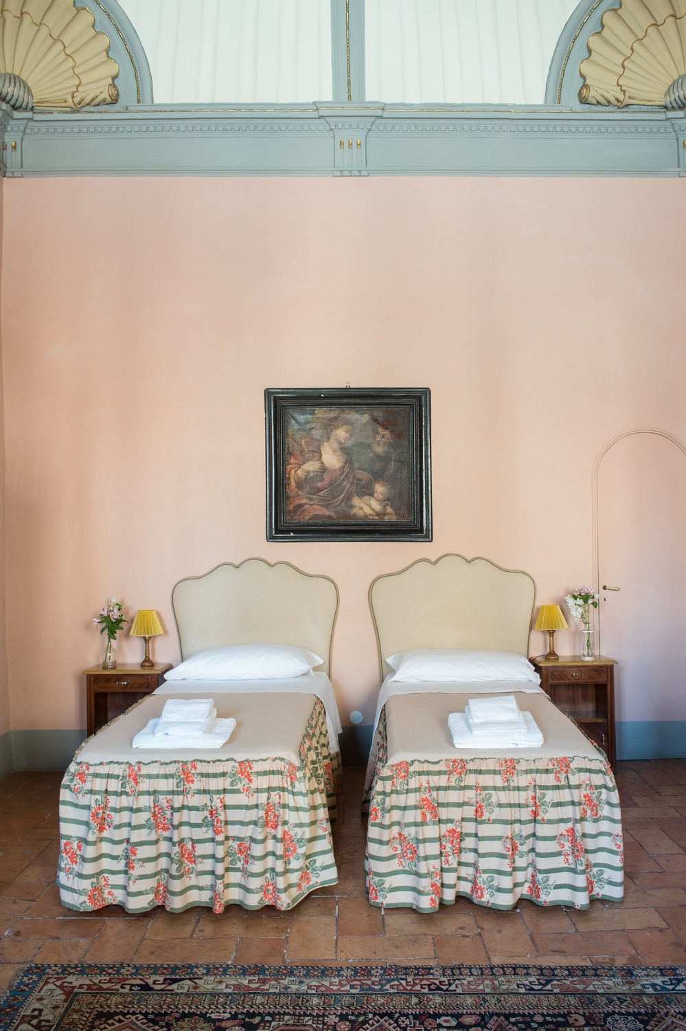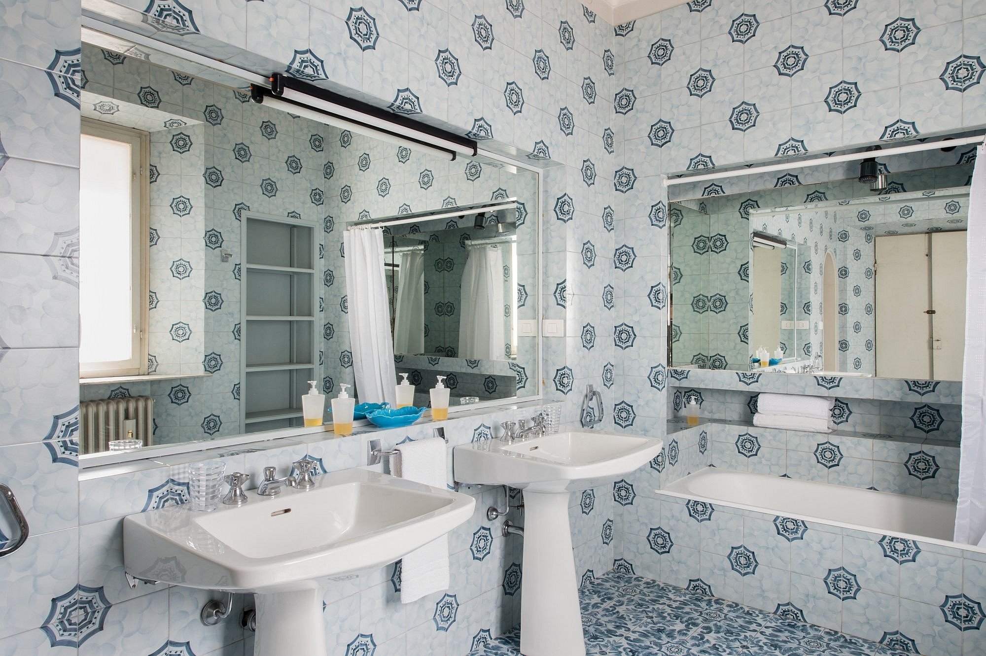 Meticulous restorations have preserved Palazzo Merletti’s authenticity while integrating contemporary amenities such as air conditioning, security systems, and high-speed connectivity. The palace features six luxurious double suites, each with unique character, some with frescoed walls or exposed beams, and modern en-suite bathrooms with marble finishes. Two kitchens (a modern chef’s kitchen and a traditional one with an antique fireplace) cater to both daily use and grand events, complemented by a formal dining room and informal sitting areas.