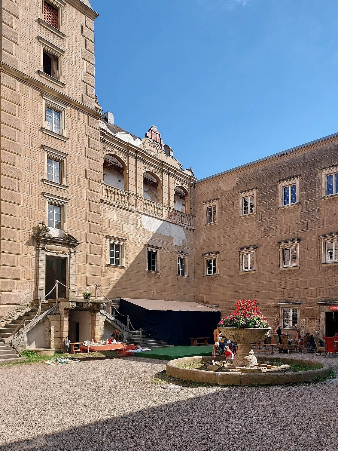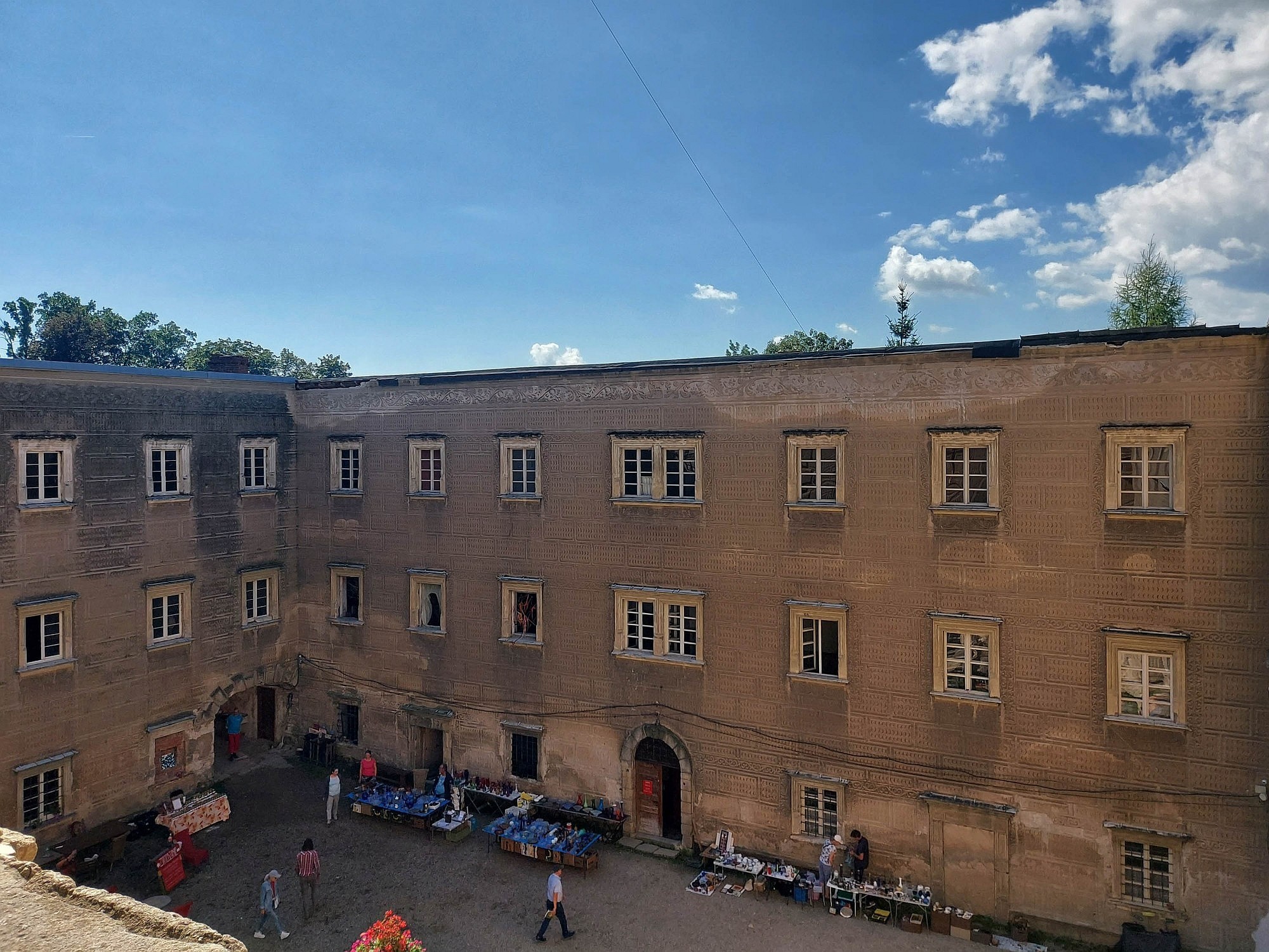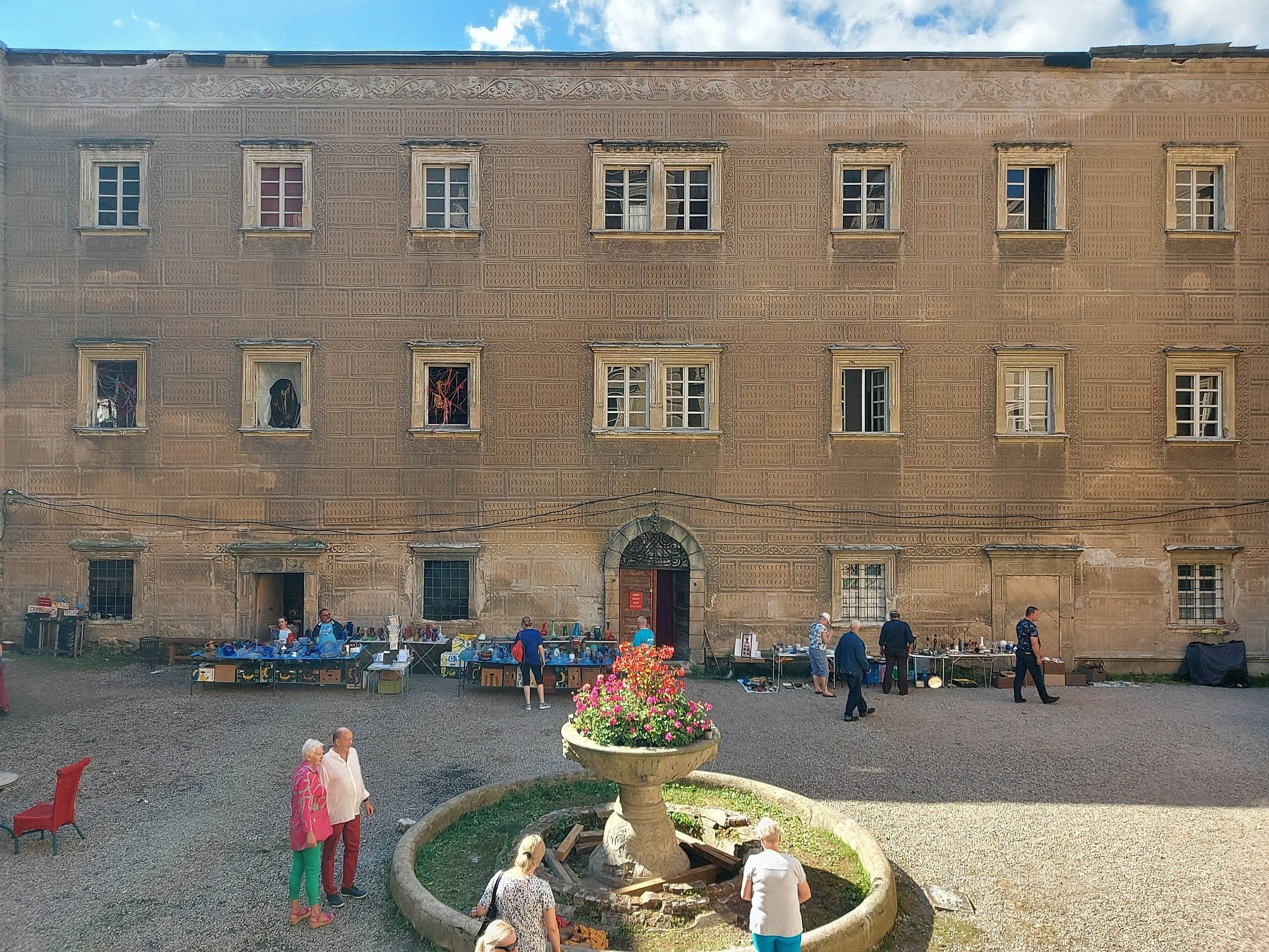 The castle and park complex at Gorzanów ranks among the most significant historic seats in Lower Silesia. The four-wing building arranged around a central courtyard, together with its parkland and several ancillary structures, is listed as a protected monument (Ref. A/5216/209). The estate is in active use, with regular concerts, cultural events and antiques fairs open to the public. One wing operates as a guest house with 25 simply furnished apartments; a café is also on site.