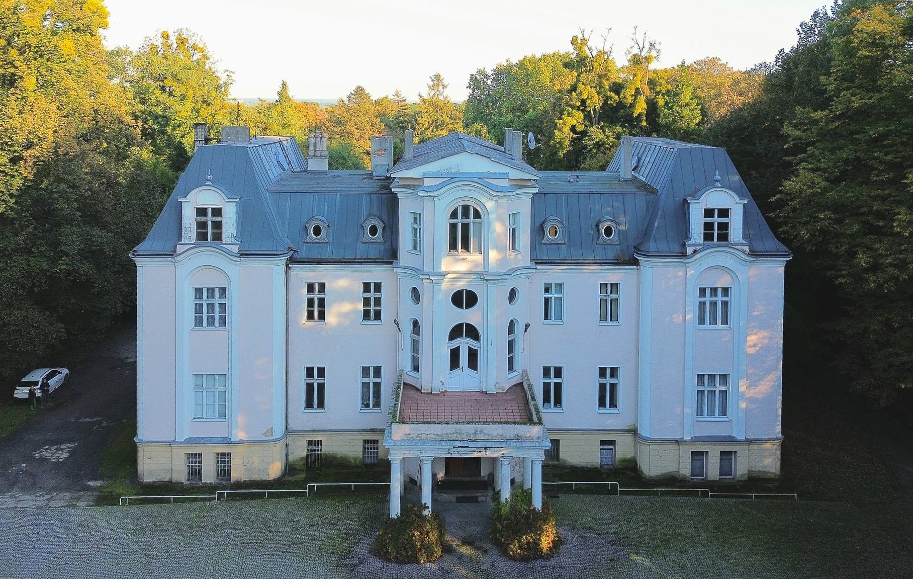 The property comprises the main building set within over 9 hectares of parkland boasting mature trees, protected natural monuments, and meticulously maintained gardens. The entire complex is registered as a historic monument within the Opole Voivodeship.