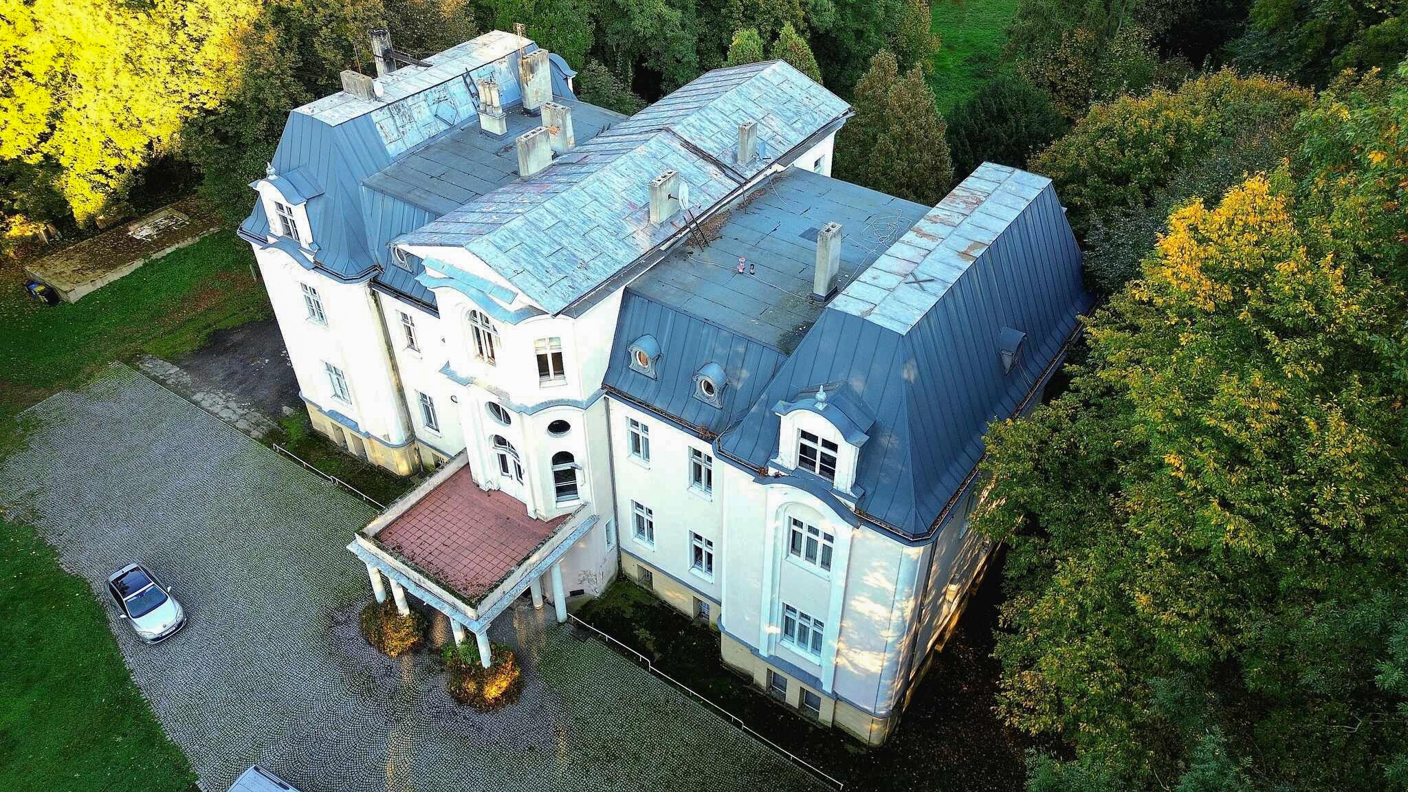Zakrzów Manor was constructed between 1898 and 1902 for Count Larisch, whose family managed the estate from the early 19th century.