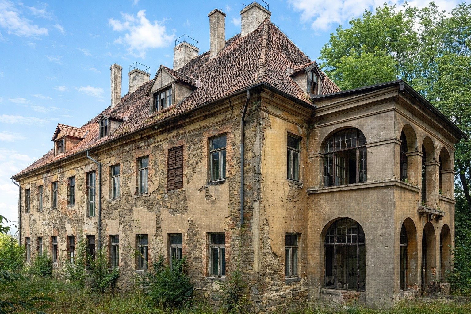 The entire complex requires comprehensive renovation. As a registered historic monument, the property is eligible for EU conservation funding available for heritage sites in Poland.