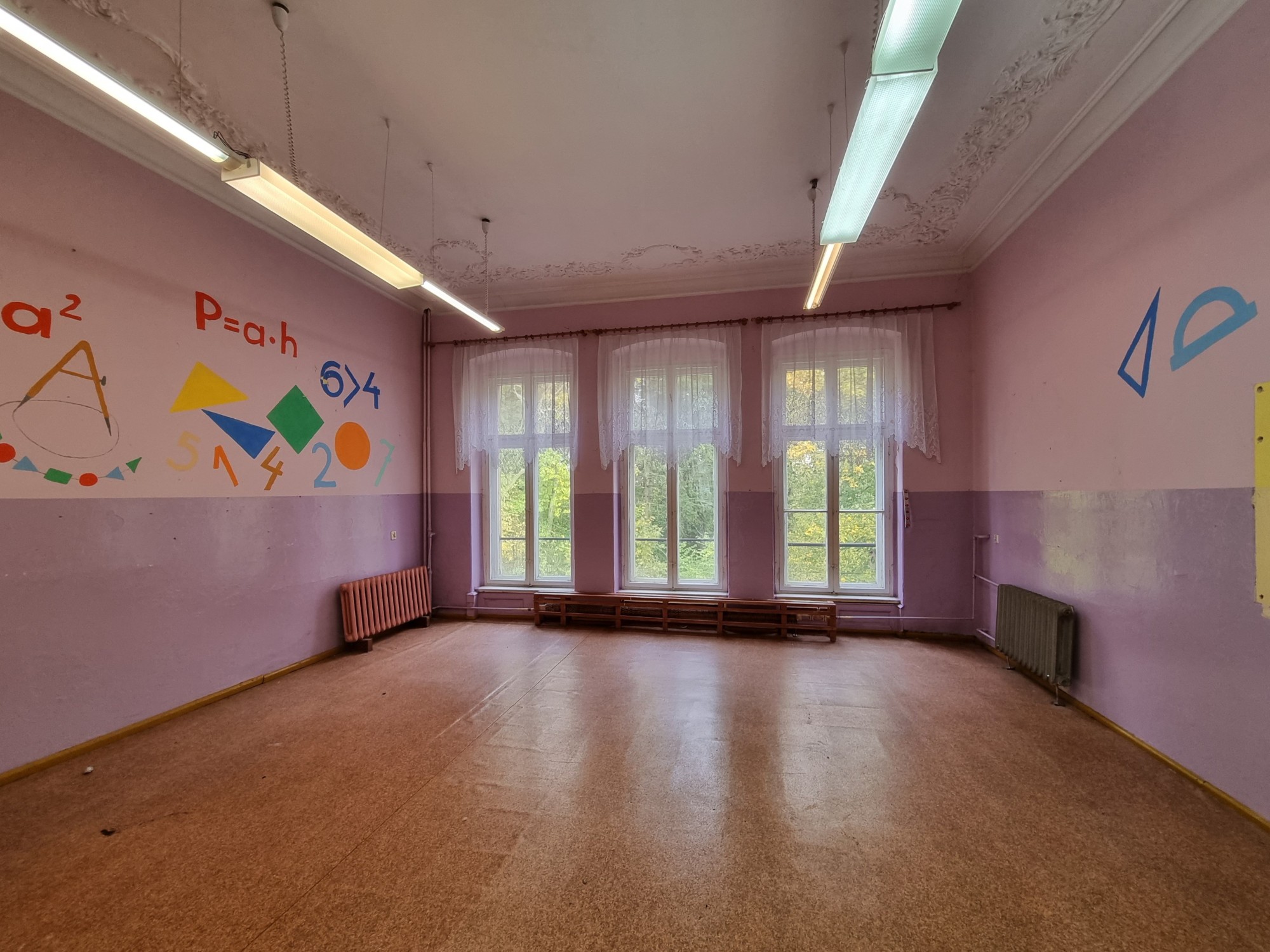 - Centralne ogrzewanie (kotłownia w piwnicy, opał stały).