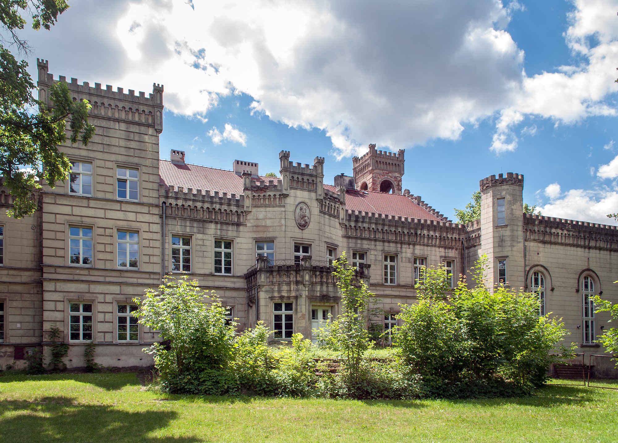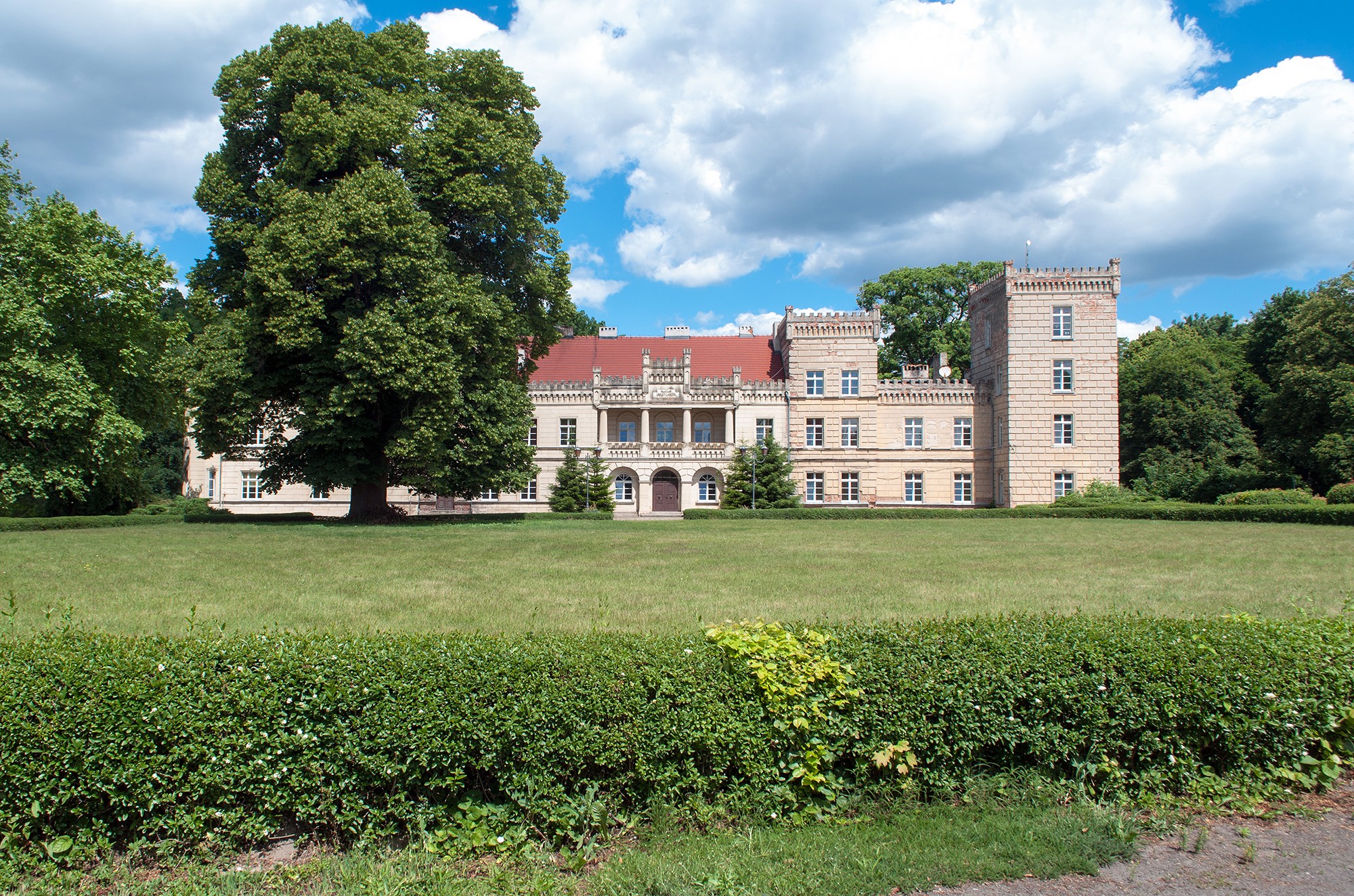 Locally, the country house is referred to as the “Pałac Kurnatowskich,” named after the Kurnatowski family, who between 1904 and 1911 extensively remodelled the original 18th-century building in the Gothic Revival style. Upon completion, the castle was considered one of the most modern residences in the Prussian province of Posen at the beginning of the 20th century, equipped with central heating, electricity, modern bathrooms, and telephones.