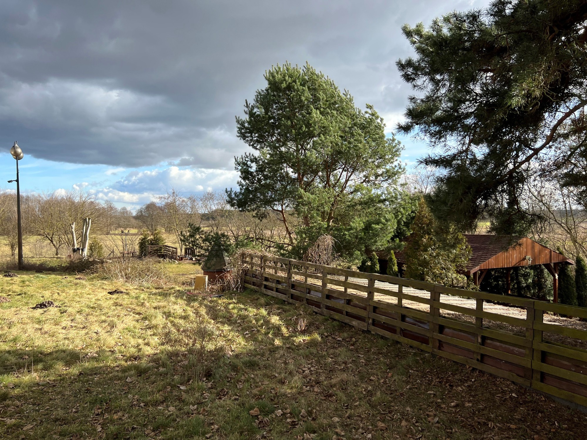 Within the enclosed grounds, there is a pavilion with a barbecue and smokehouse, a fire pit, and a separate outbuilding with a bedroom, bathroom, kitchen, and living area.