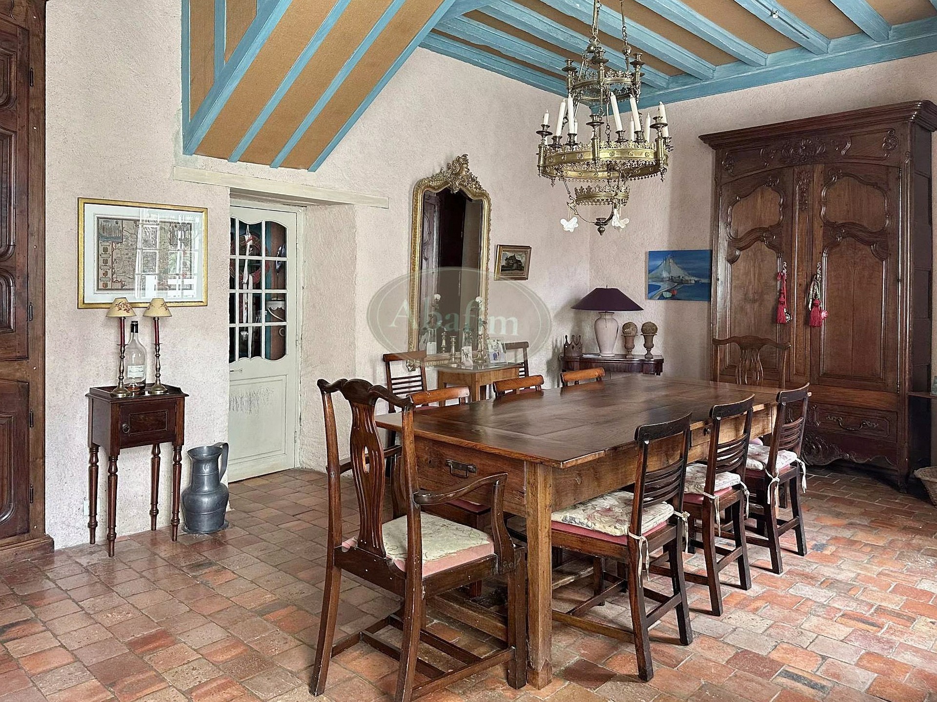 The residence is topped with a slate roof and served by an oil-fired central heating system. The windows feature a combination of single and double glazing. Drainage is provided by a private septic system. The estate further includes two substantial barns and a former mill, offering significant potential for conversion or further development.