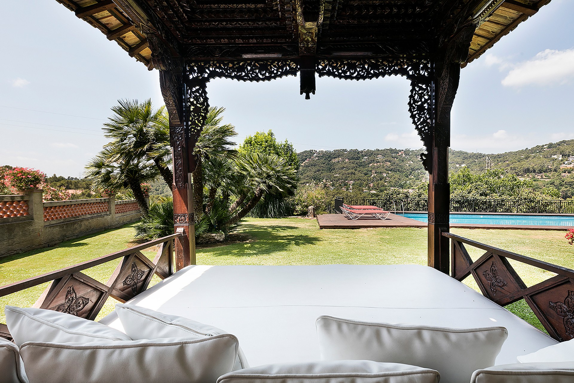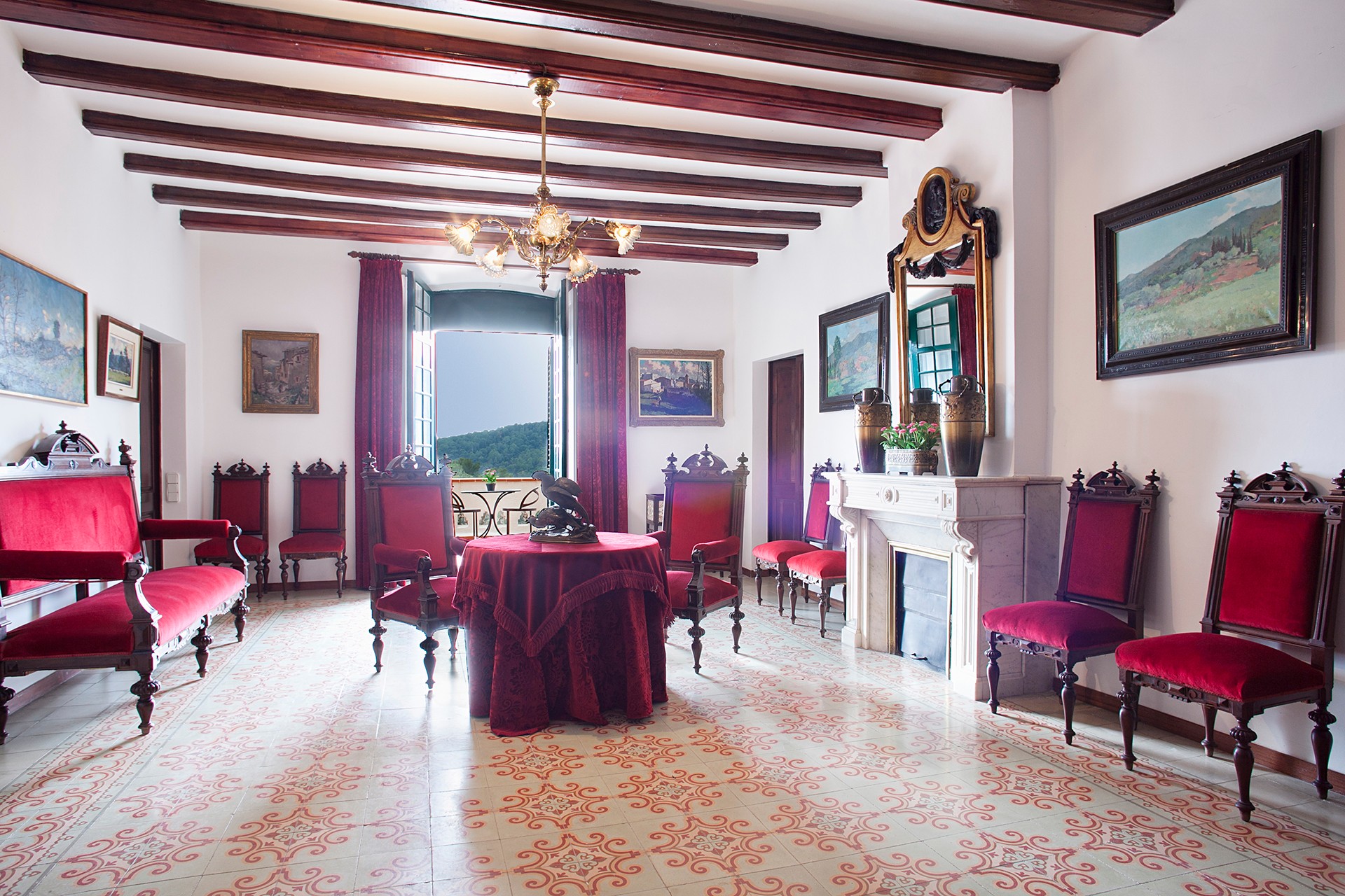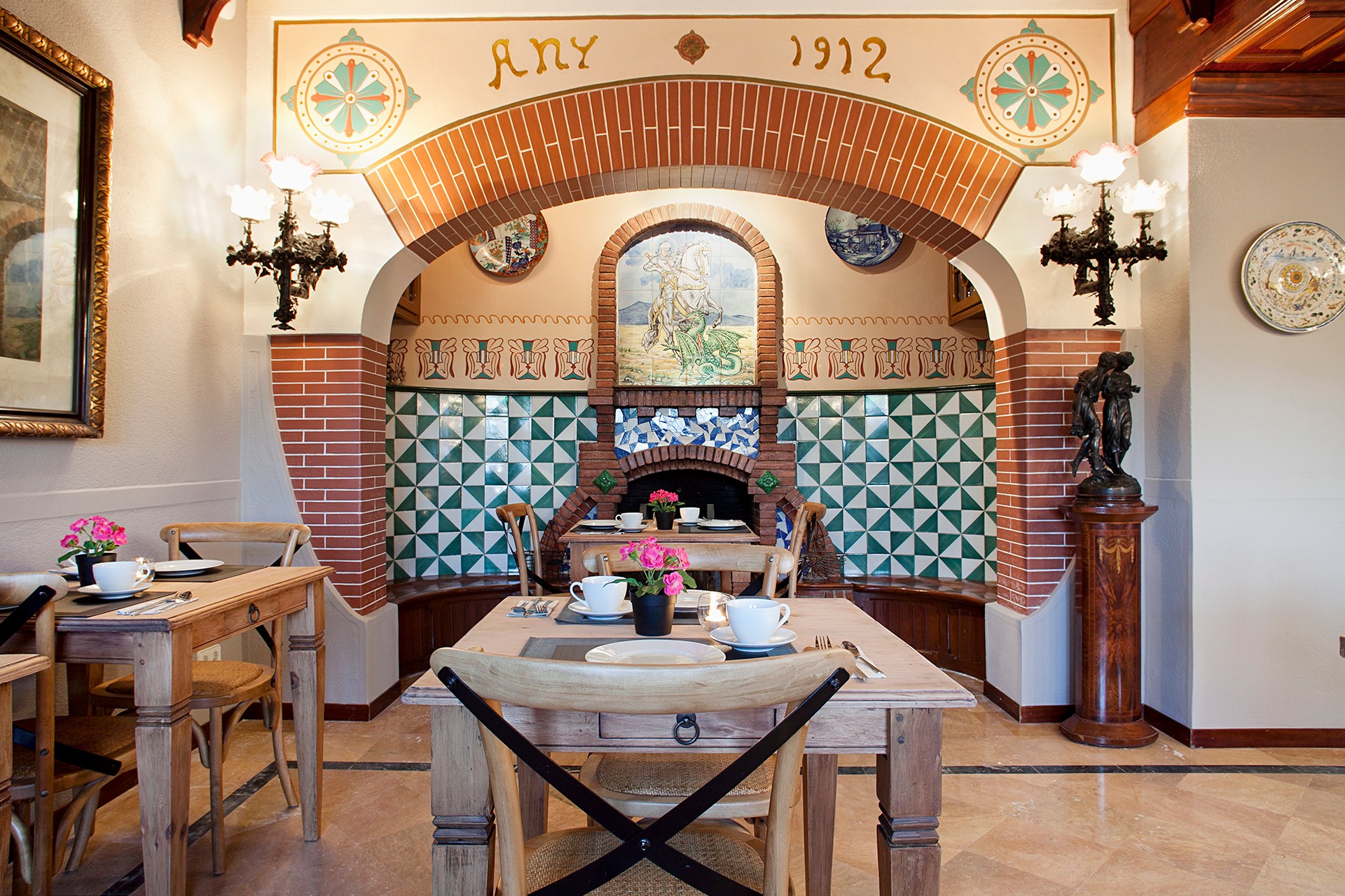 The main villa, built in 1912 and designed by Juli Batllevell, a student of Domènech i Montaner, has been extensively renovated. Original features such as the façade, stained glass, hydraulic floors, decorative ceilings, frescoes, and mosaics have been preserved. The villa includes spacious reception rooms, a chapel, suites with terraces, and event spaces accommodating up to 70 guests.