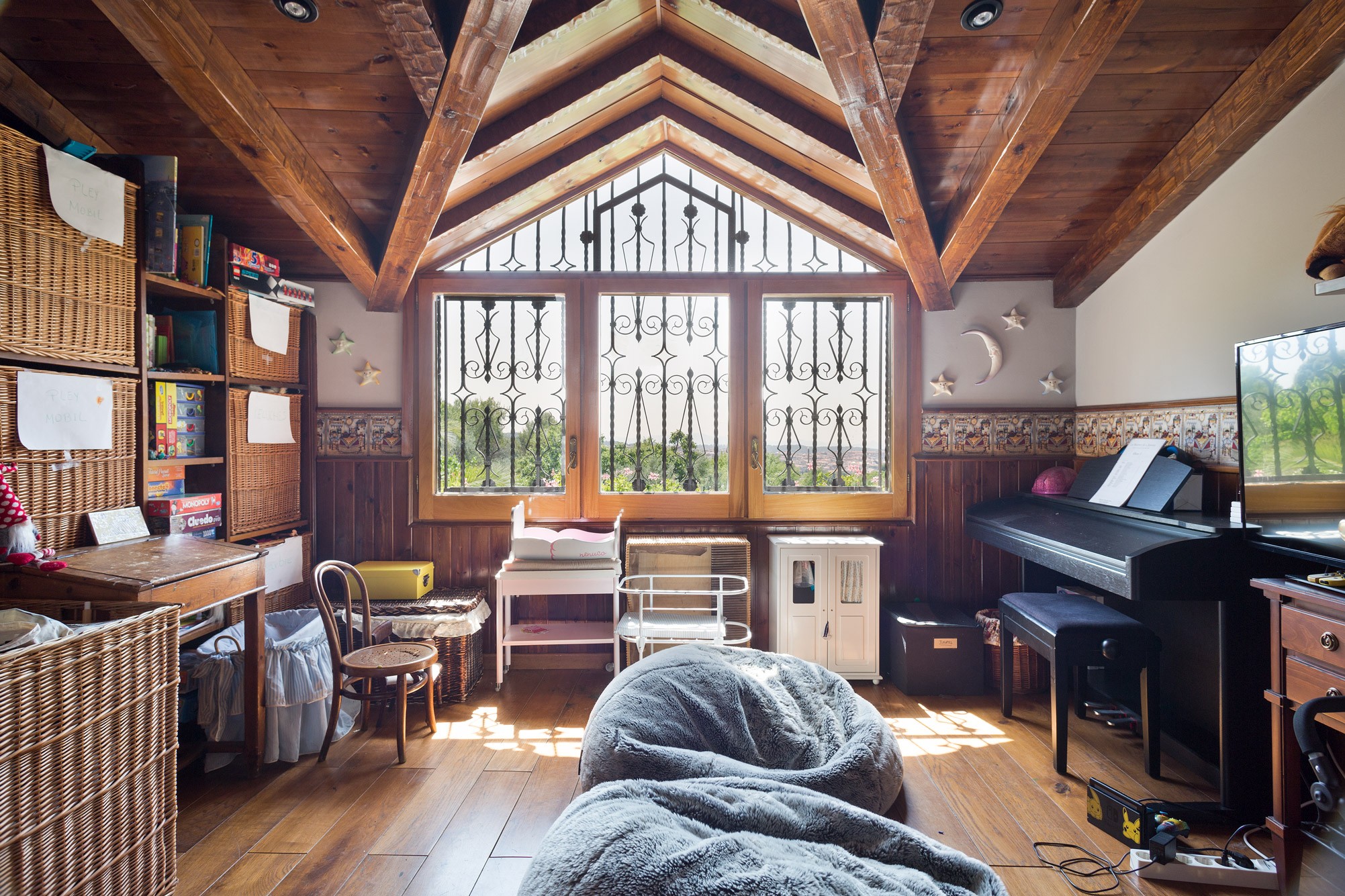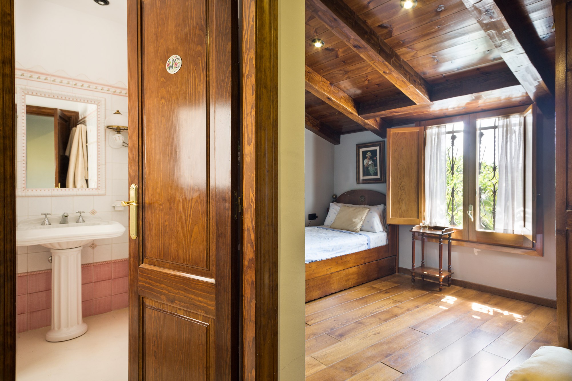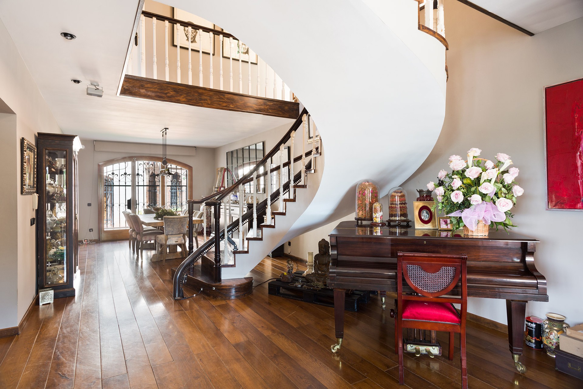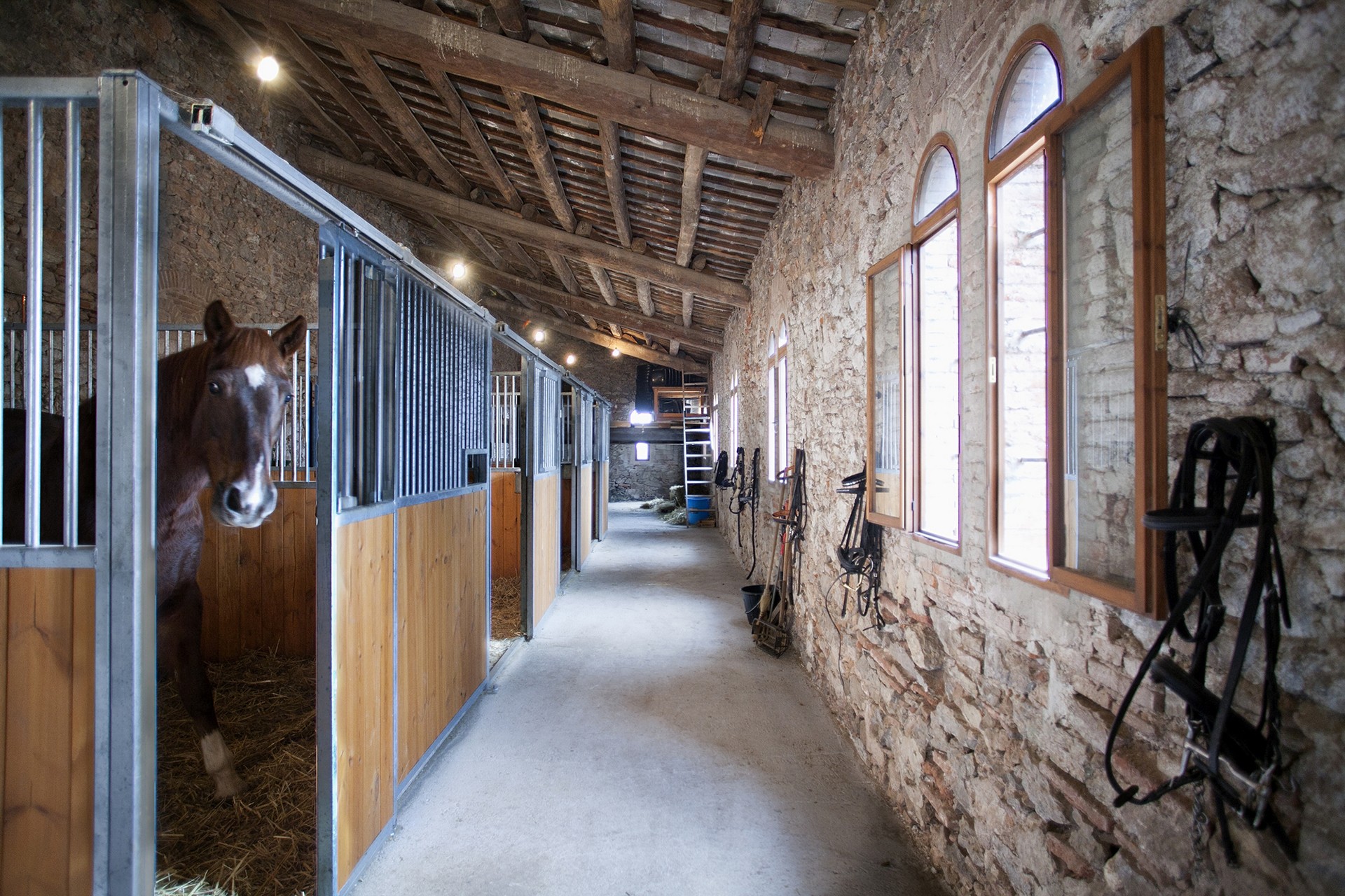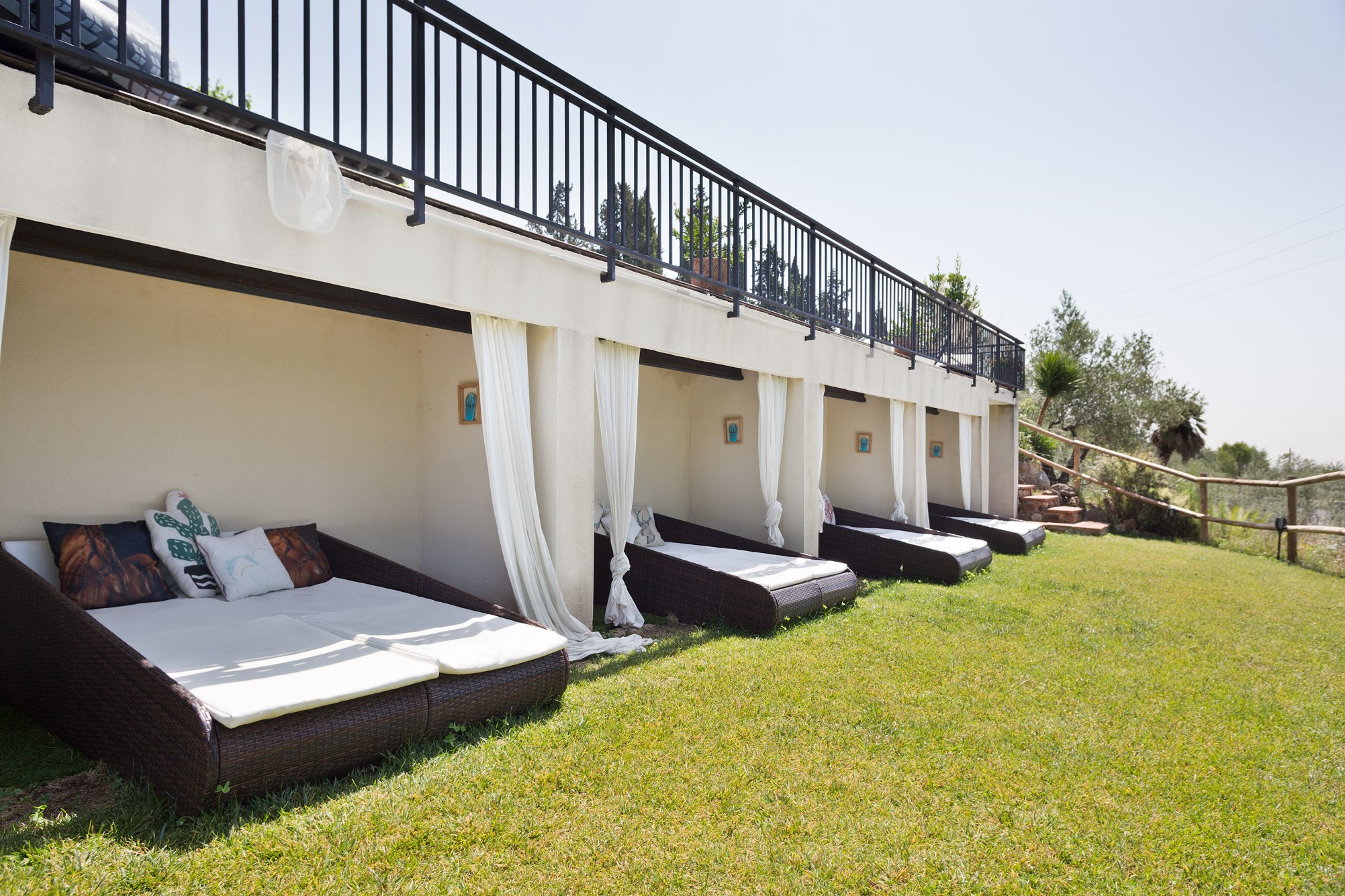 The additional residences provide accommodation for staff or guests. The grounds feature gardens, a pool with pergola, riding arena, stables, olive groves for oil production, and extensive woodland.