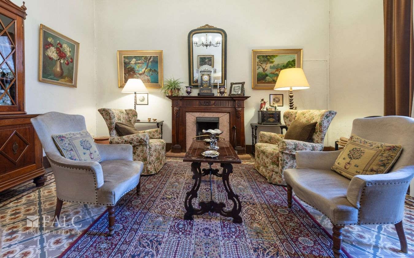 The living area of approximately 550 m² is spread across three floors and a basement. From the impressive entrance hall to the open foyer with splendid period details, the grandeur of this imposing residence is immediately apparent.