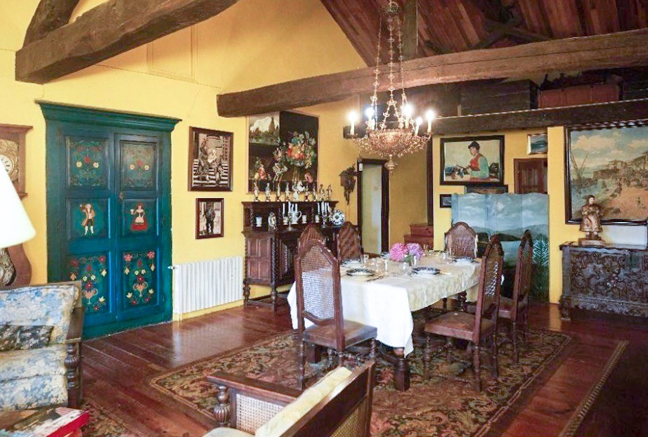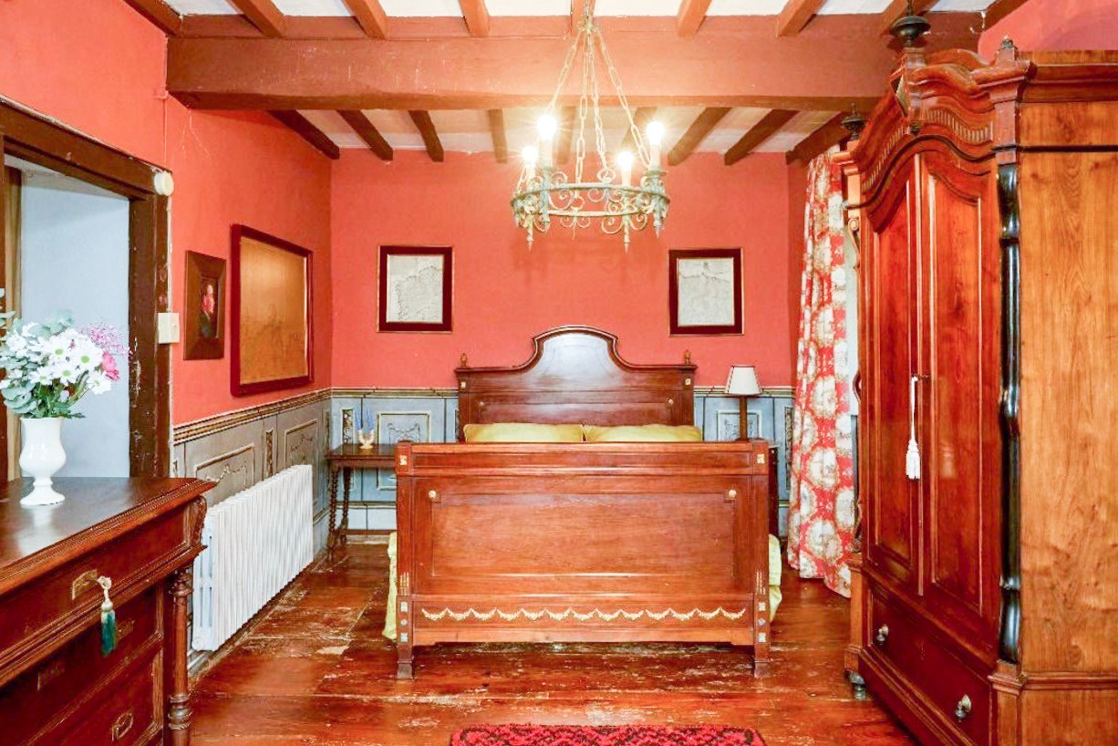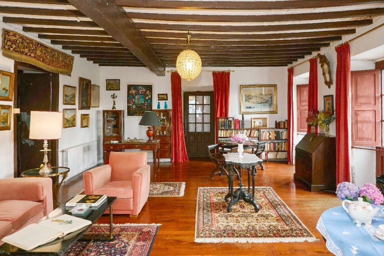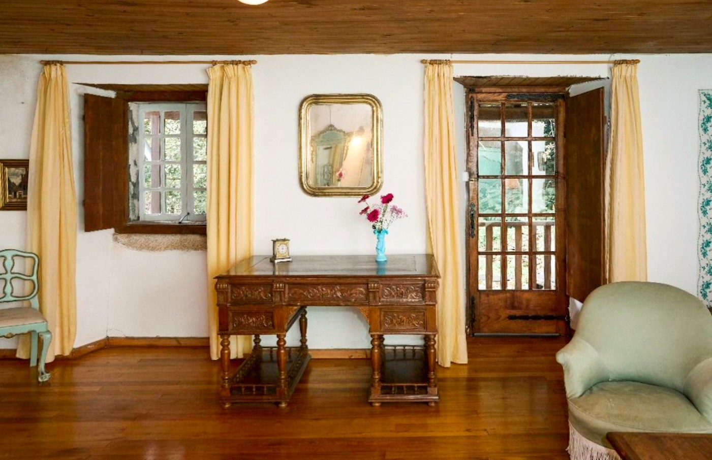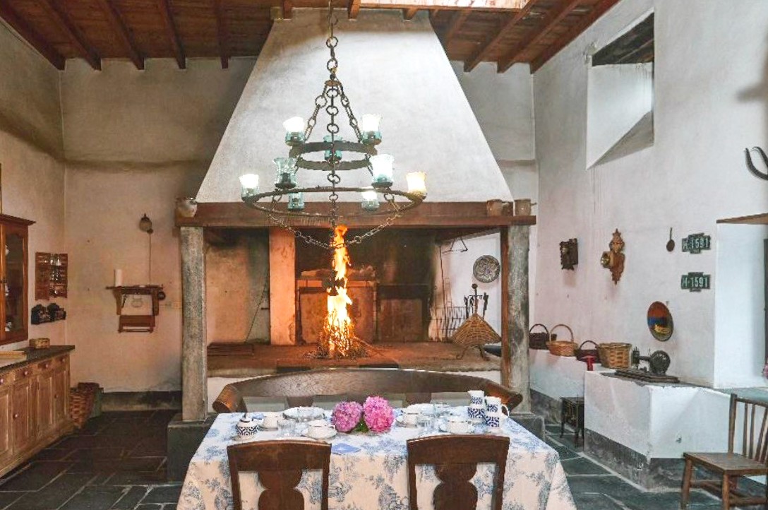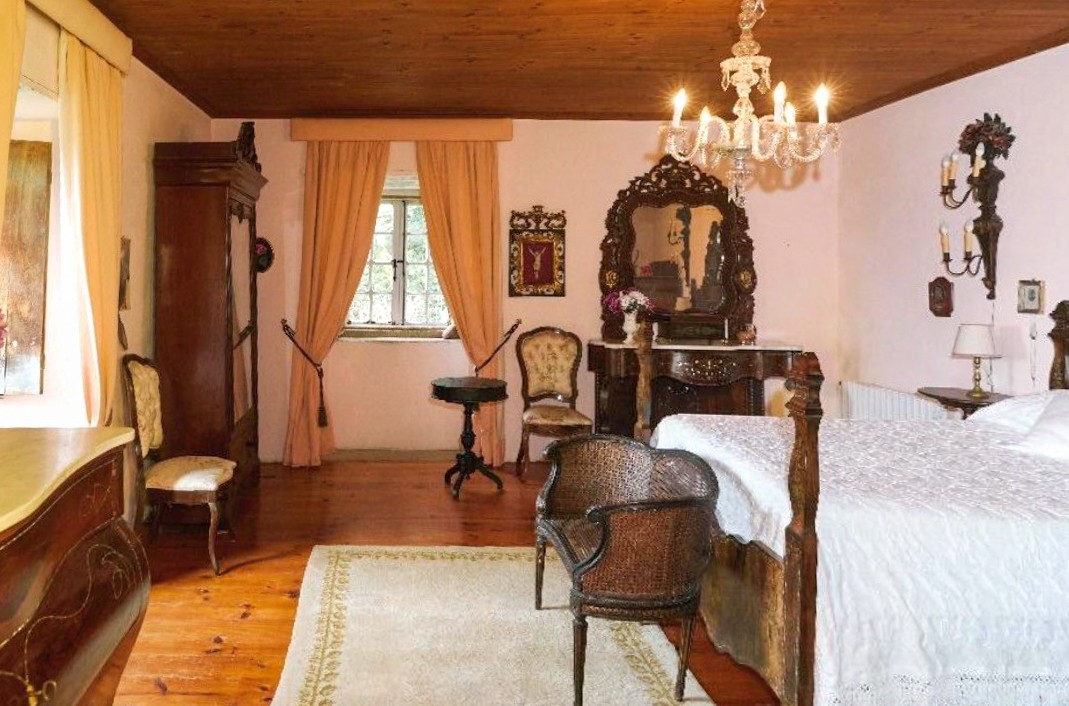 The principal house provides six bedrooms, three bathrooms, and a guest WC. Further accommodation includes a living room with panoramic windows overlooking the ría, a dining room with exposed timber beams, and a traditional Galician kitchen with a lareira (open hearth) and wood-fired oven. Original period details remain preserved throughout.