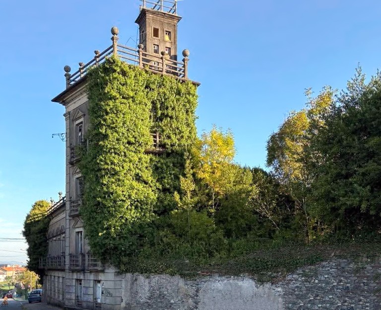 Torre de Borrás is an early 20th-century building complex originally erected as a sanatorium and now abandoned. The principal building on the approximately 4,000 sqm / 1 acre plot is a neoclassical and eclectic villa with a 25-metre-wide street façade and a distinctive accessible tower featuring a roof terrace and balustrade, from which extensive views open across Ferrol Bay.