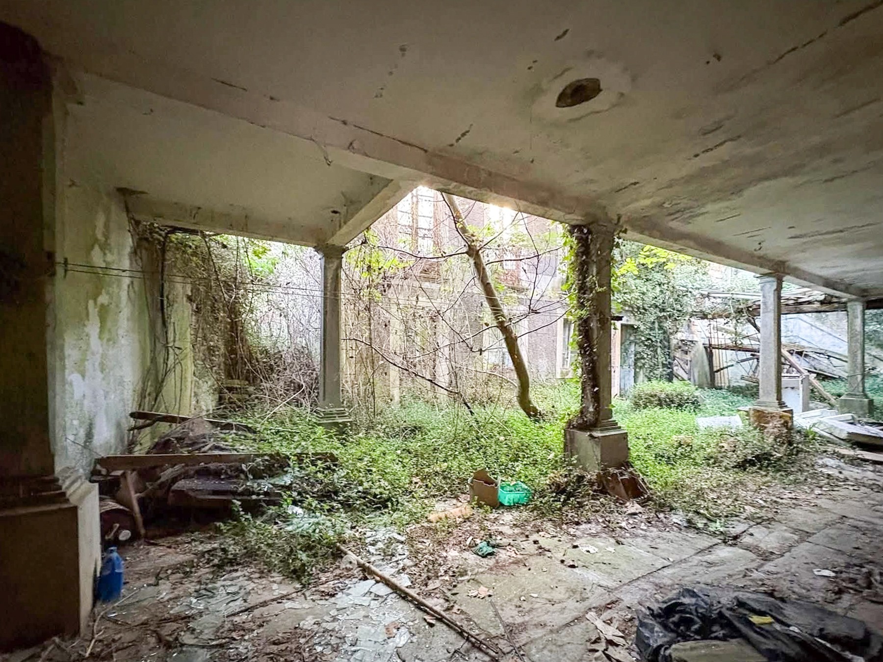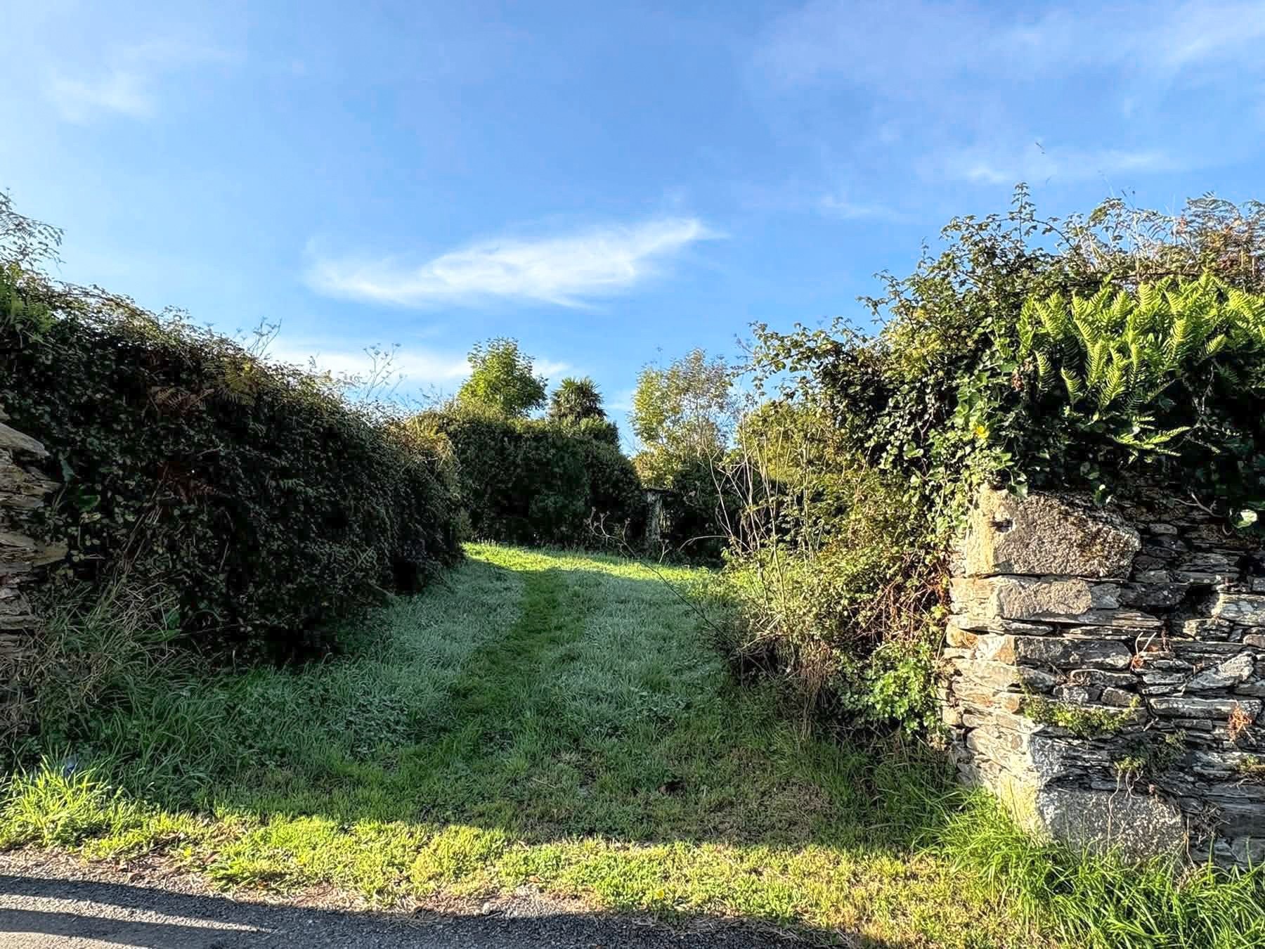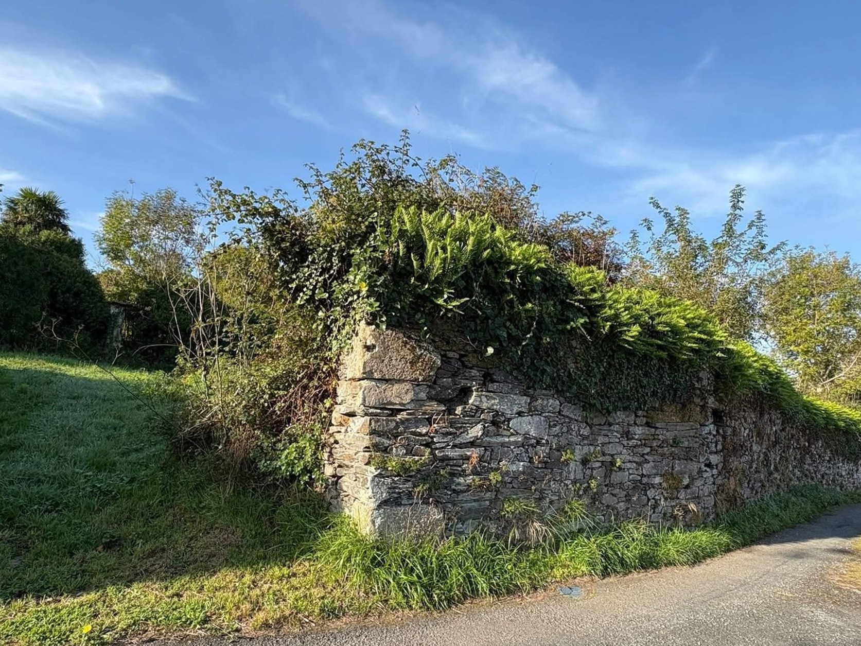 The building is in a ruinous state and the grounds are overgrown, requiring comprehensive restoration throughout. Of particular note are the substantial plot size and the proximity to the bay and coastline. The price is negotiable.