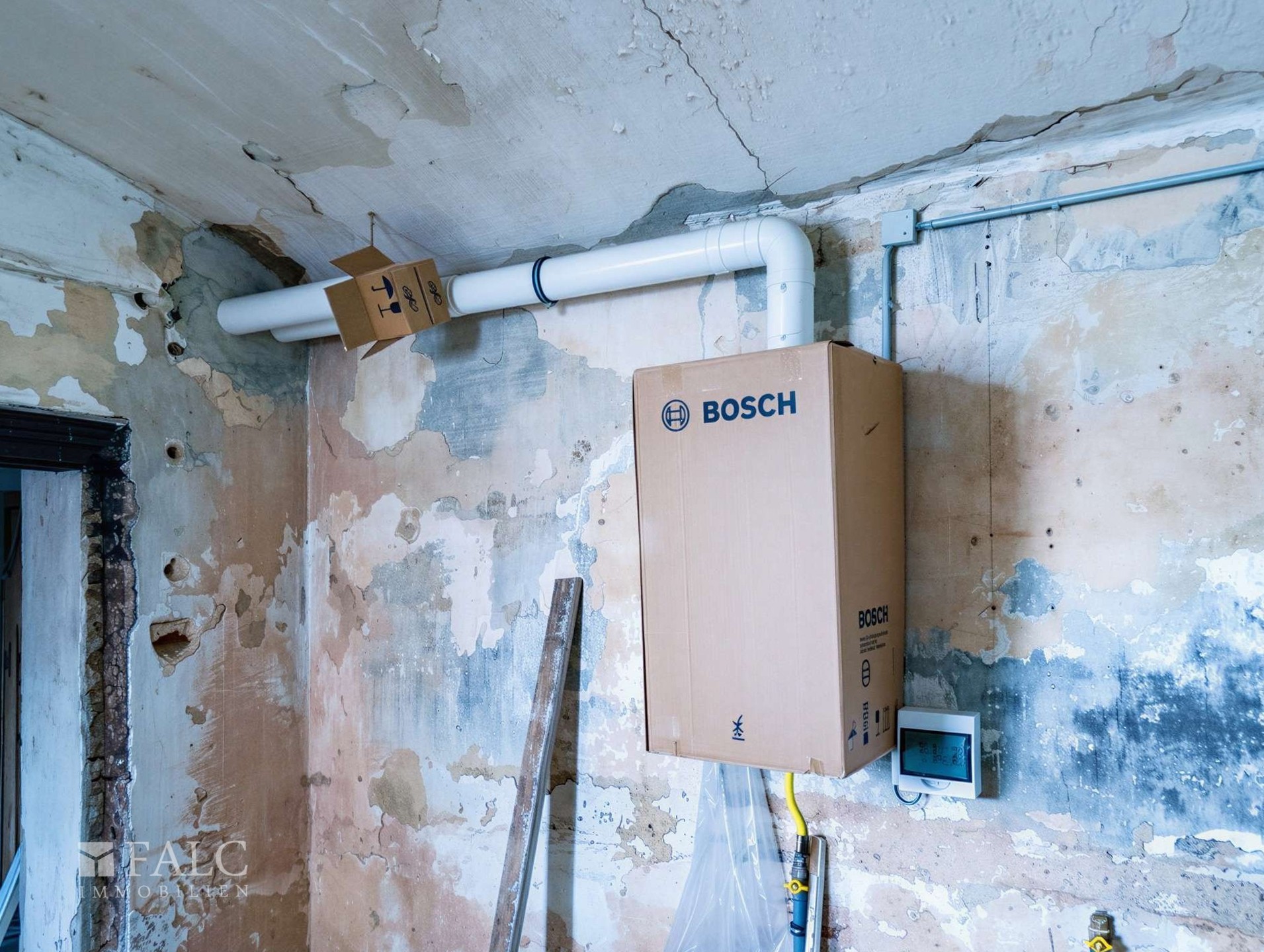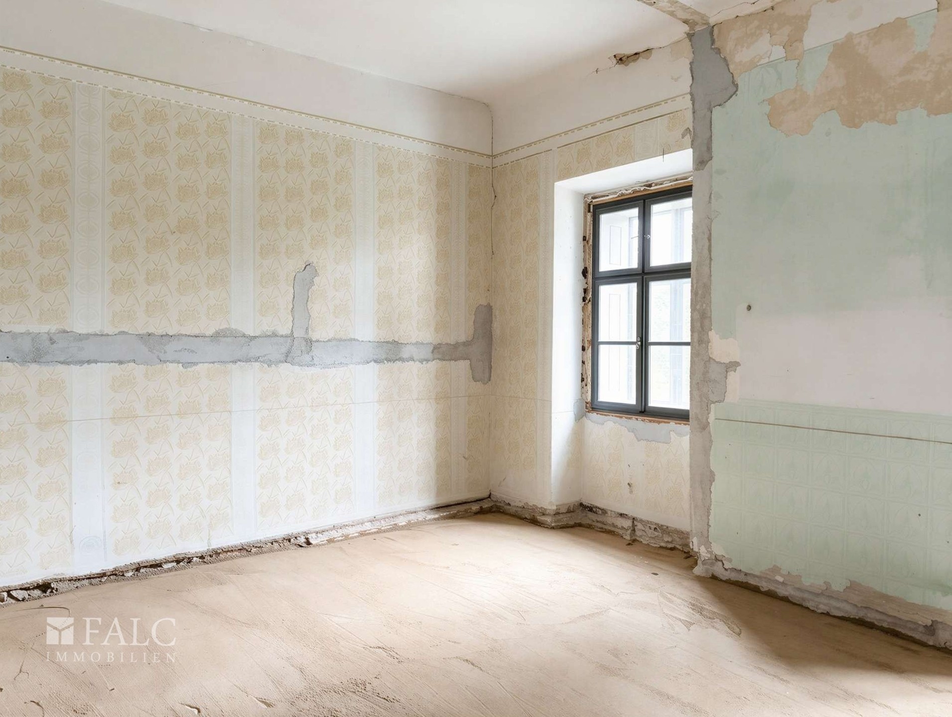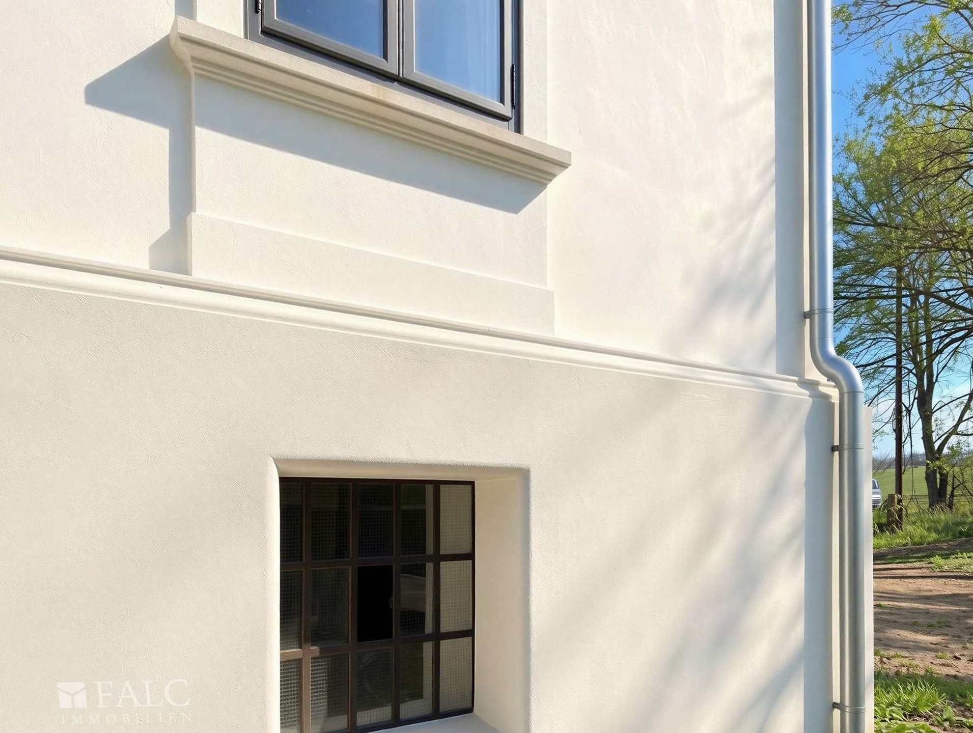 The exterior of the building has been fully reinstated, including a complete replacement of the roof structure and tiling, chimney reconstruction, and a full facade restoration. All windows and doors have been replaced with bespoke, period-accurate reproductions. Technical improvements also include comprehensive structural sealing and the installation of a new stone-paved driveway. Internally, the property retains its original timber-beamed ceilings, and current works are focused on restoring the floor surfaces and installing a modern gas heating system.