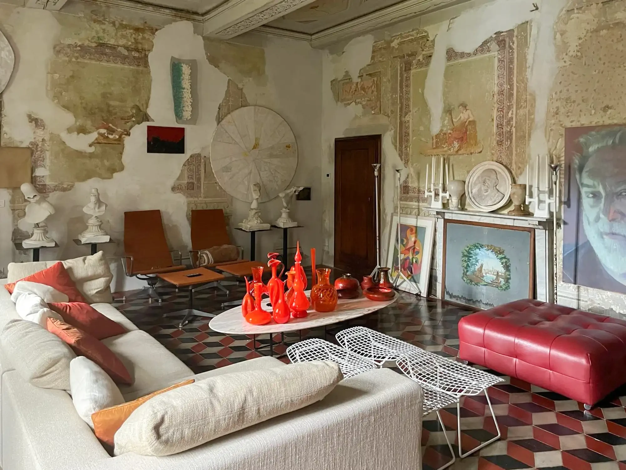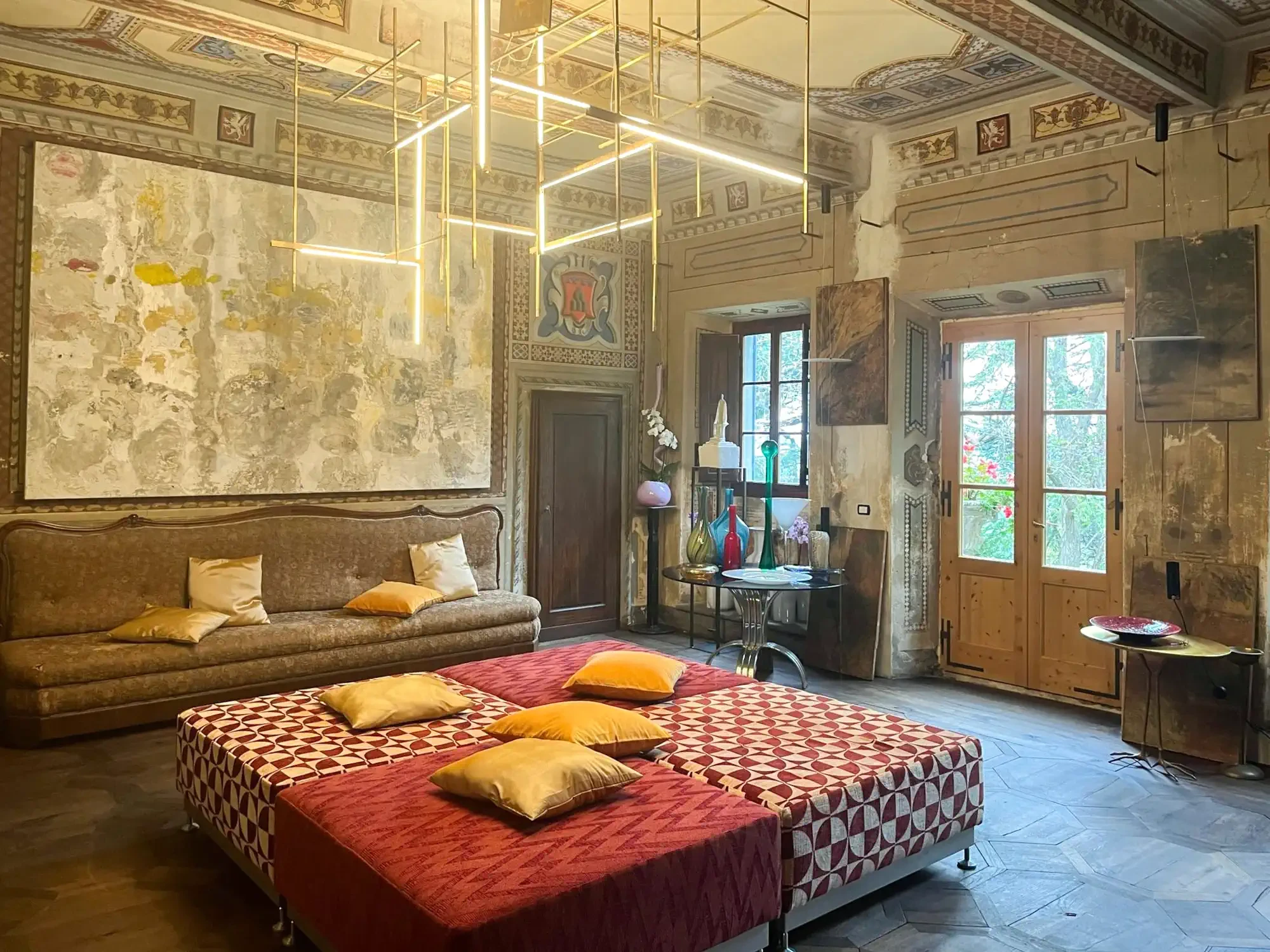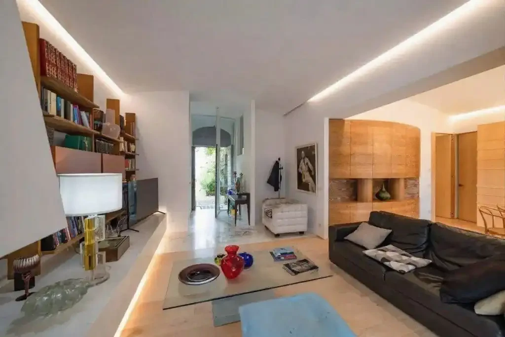 Original terracotta floors and historic wooden doors have been preserved, seamlessly integrating with the overall aesthetic.