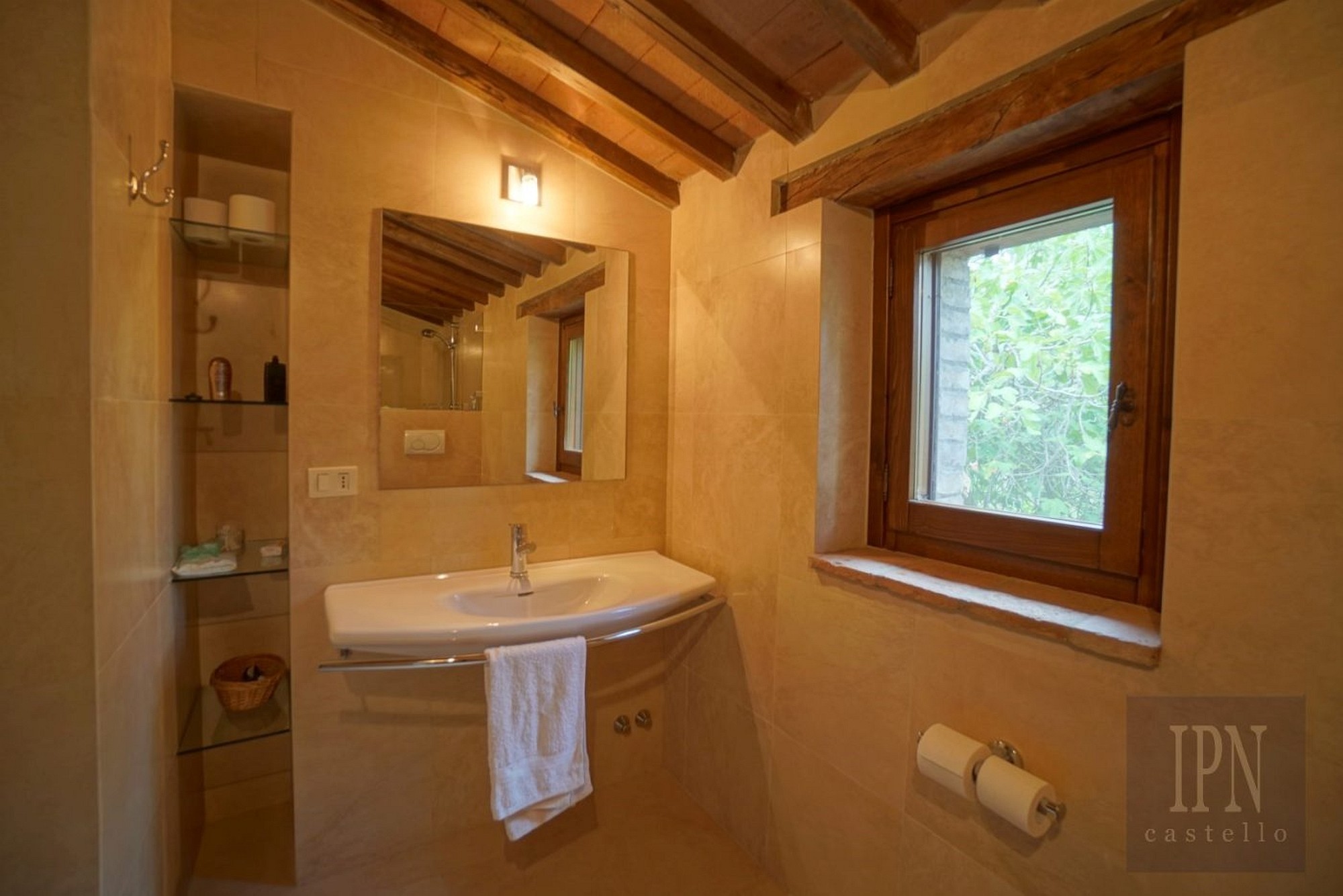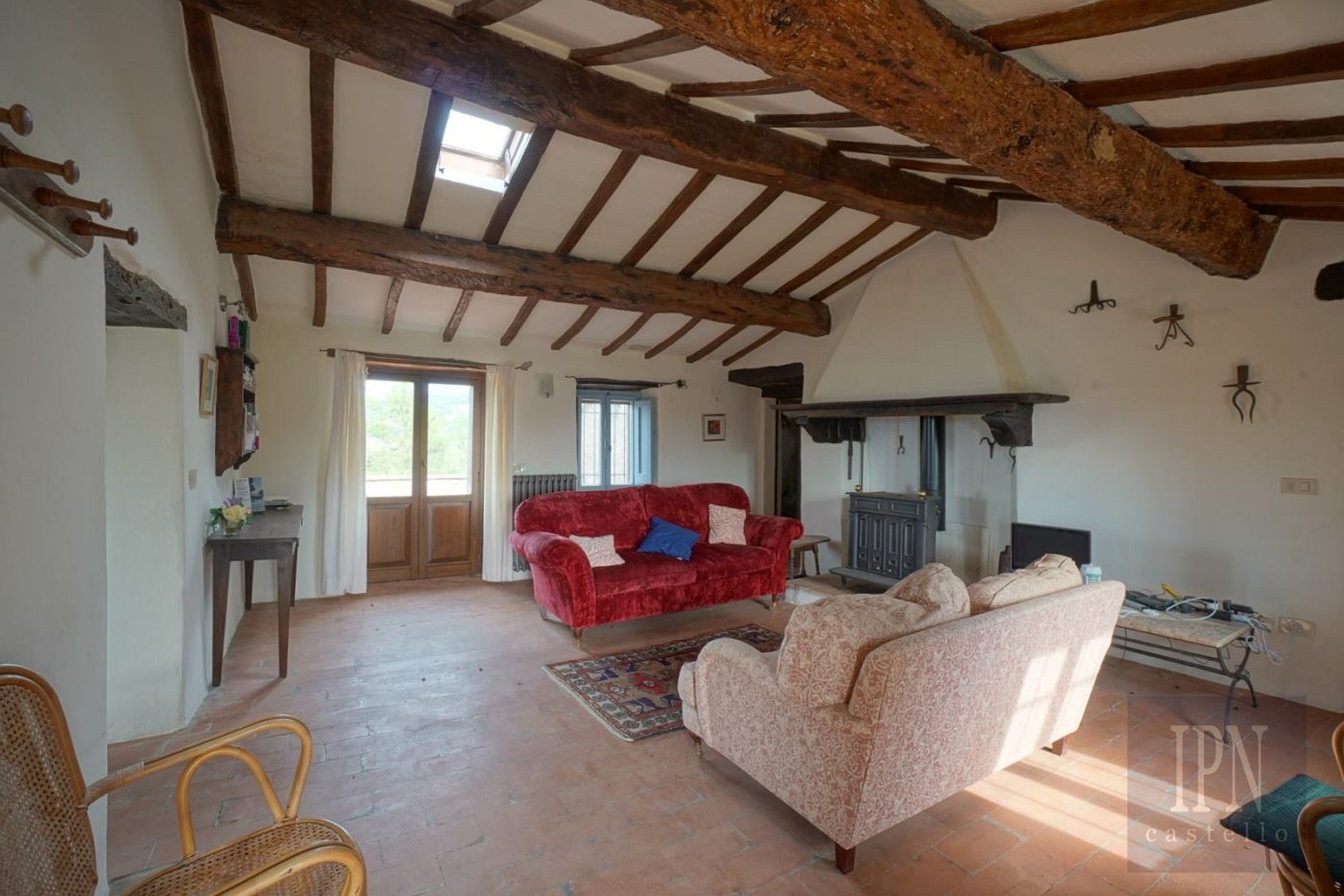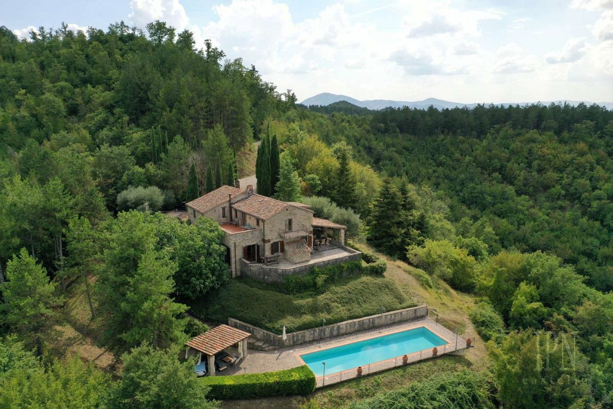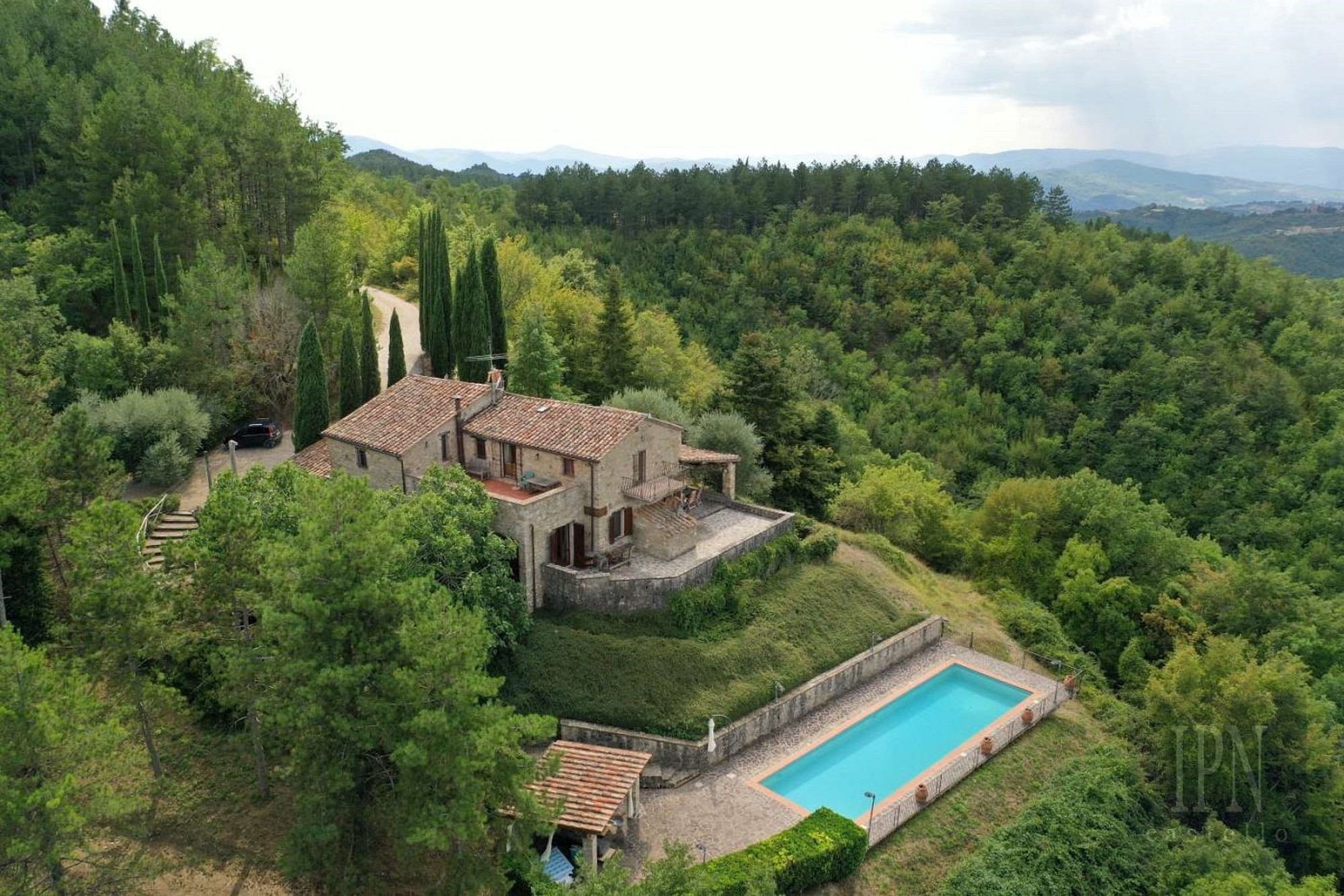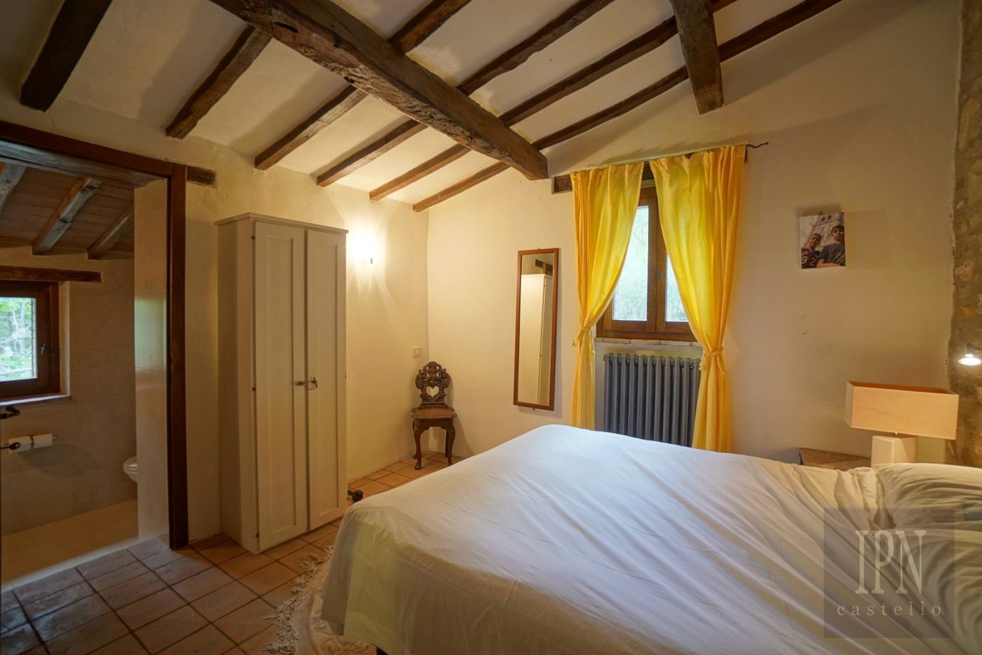 The stone house enjoys an excellent forested location, approximately 20 minutes from the nearest towns such as Pietralunga and Umbertide, ensuring maximum privacy and tranquility. Yet, just a short walk away is an excellent panoramic restaurant and the historic San Faustino Abbey.