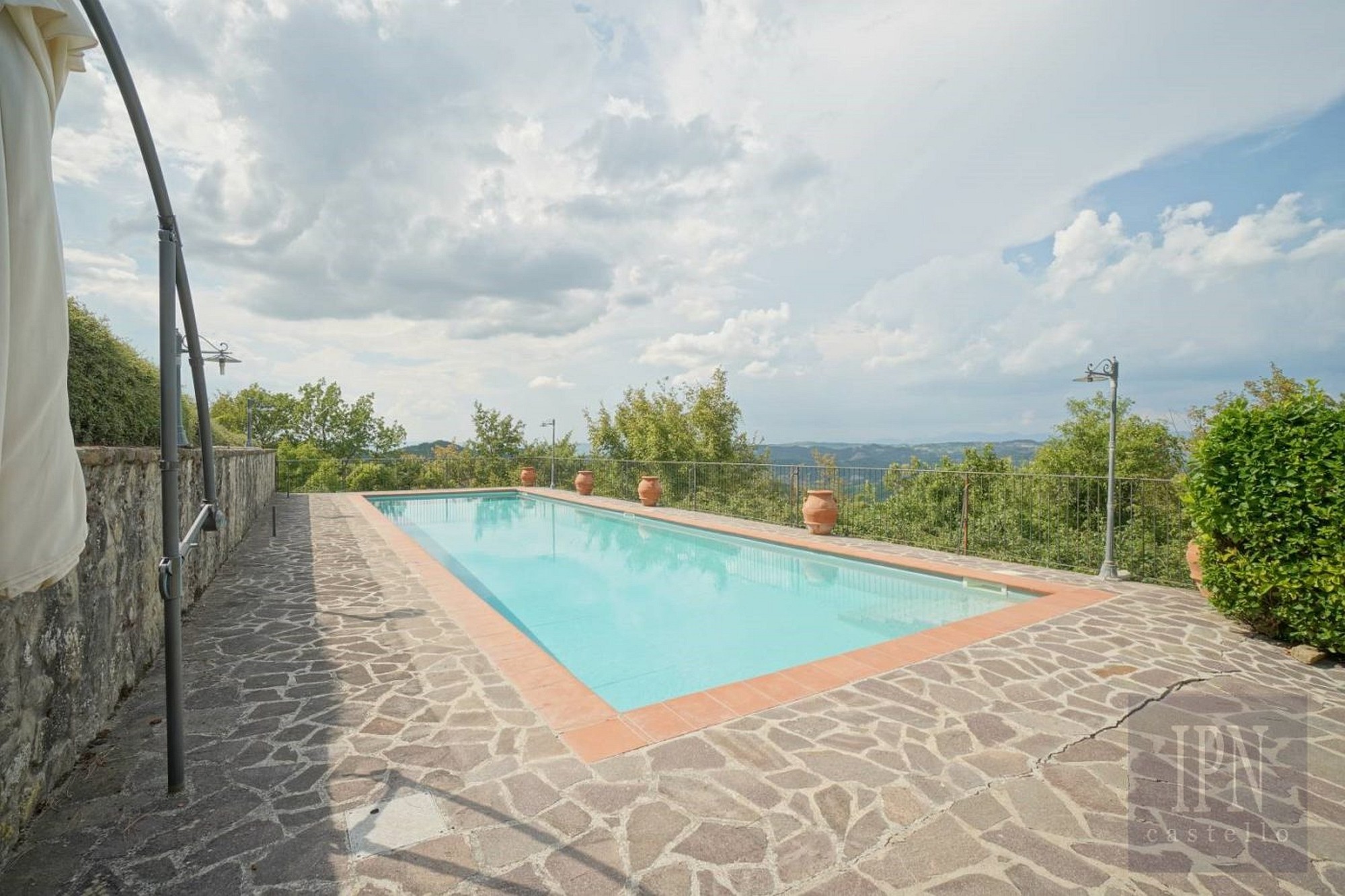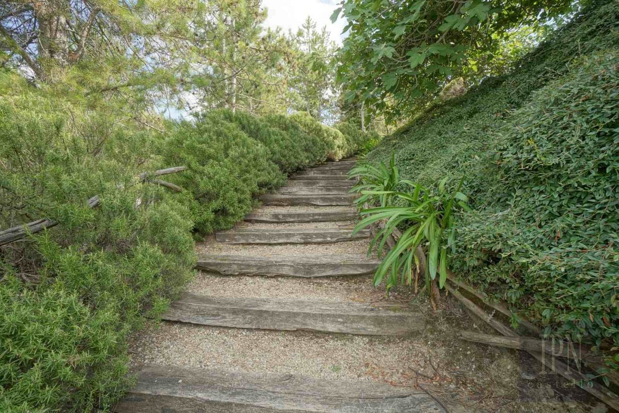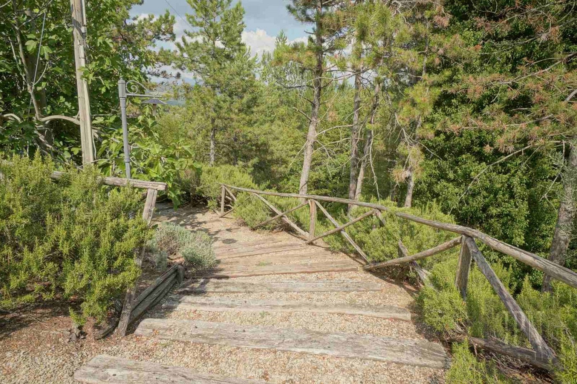 The house is surrounded by a multi-level paved terrace, enhancing the charm of Casa Del Monastero. A wooden staircase leads to the pool terrace with the large swimming pool (4 x 16 m), from which one can enjoy the magnificent panorama. The property is set within woodland and features tall cypresses, olive trees, and many other low-maintenance plants.