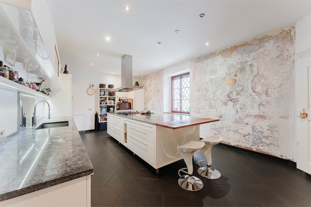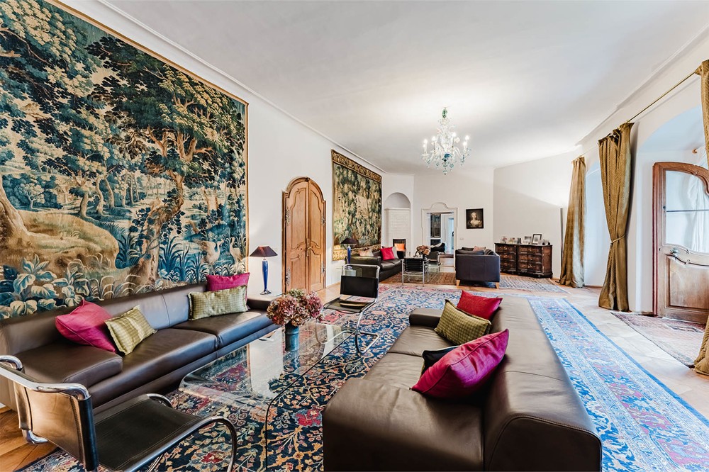 Behind its venerable façades lies a residential ensemble of extraordinary beauty. Spacious rooms with lofty ceilings, ornate stucco work, and original wood panelling tell tales of past centuries.