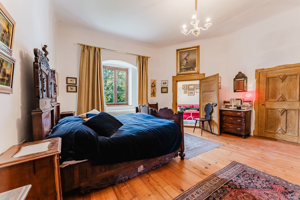 Grand fireplaces invite cosy moments in an aristocratic atmosphere, while the charming chapel dedicated to St. Nepomuk - adorned with intricate Rococo altars and works by Baroque painter Bartolomeo Altomonte (1769) - adds a spiritual dimension to the estate.