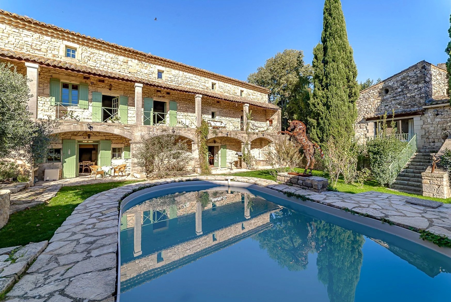18th-century mas with two independent apartments (52 and 71 m²). Generous reception rooms, six bedrooms, four bathrooms. Garden with pool, 73 m² garage. In a sought-after village 5 km from Uzès, with shops within walking distance.