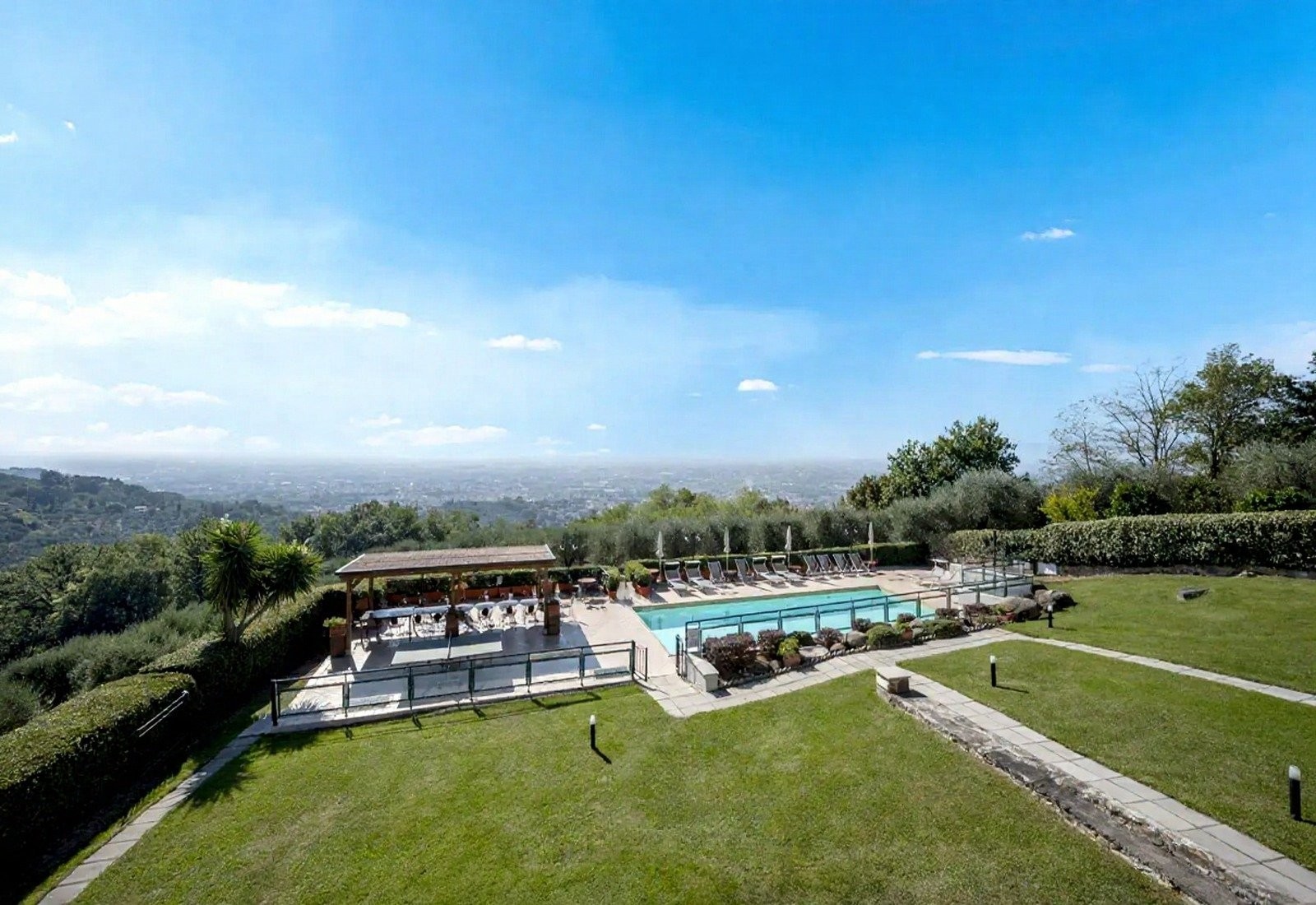 Pool: 5.5 × 12 meters with adjacent solarium terrace overlooking the valley and Montecatini Terme